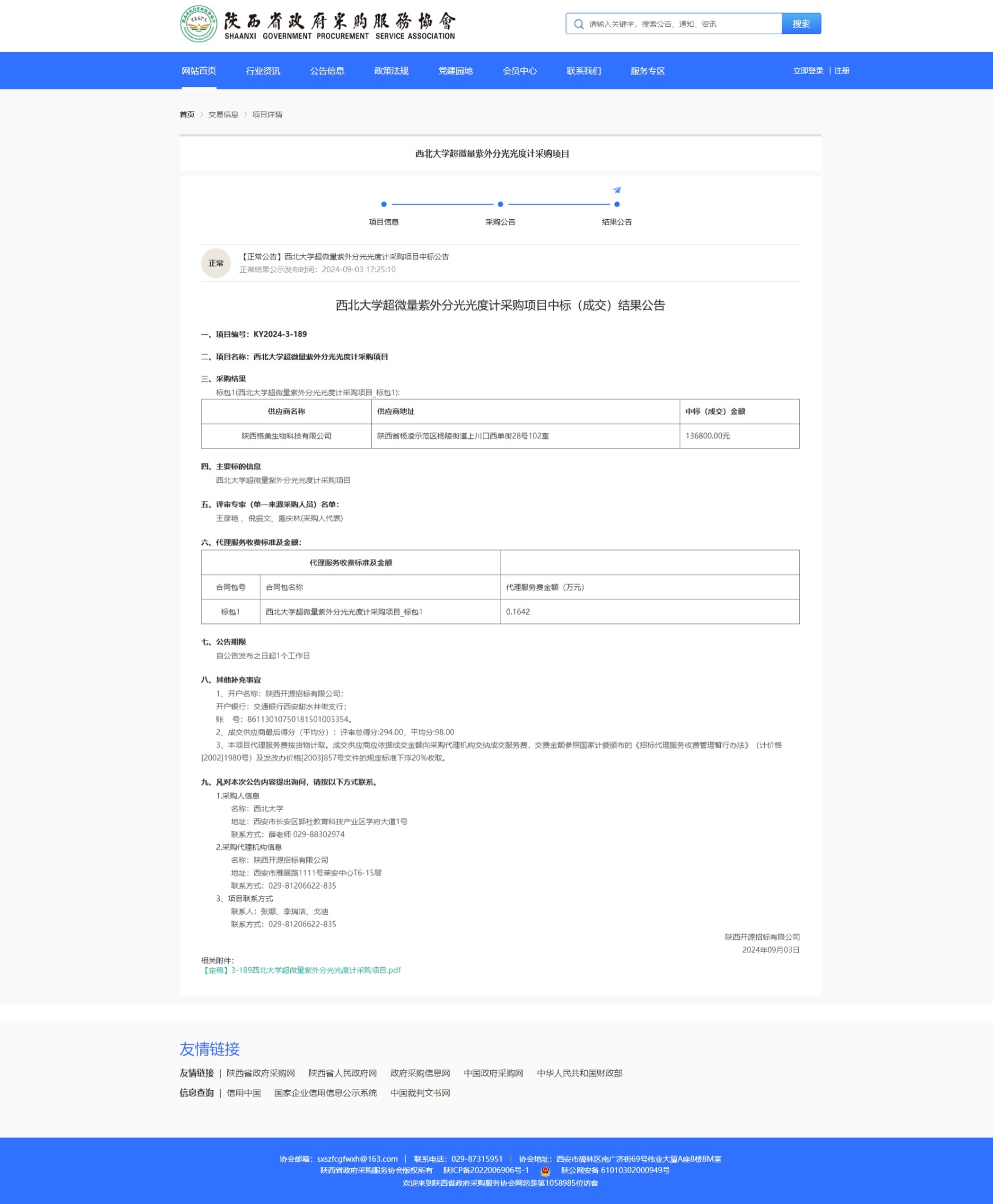 九游会在线登录官网超微量紫外分光光度计采购项目中标(成交)结果公告 作者: 编辑:采购与招标办公室 时间:2024-09-04 原公告链接:https://www.sxszfcgfwxh.cn/#/tender-vTradeAnnouncement-publicity?tenderProjectId=1826435442958446594&rootId=1549250580985765889