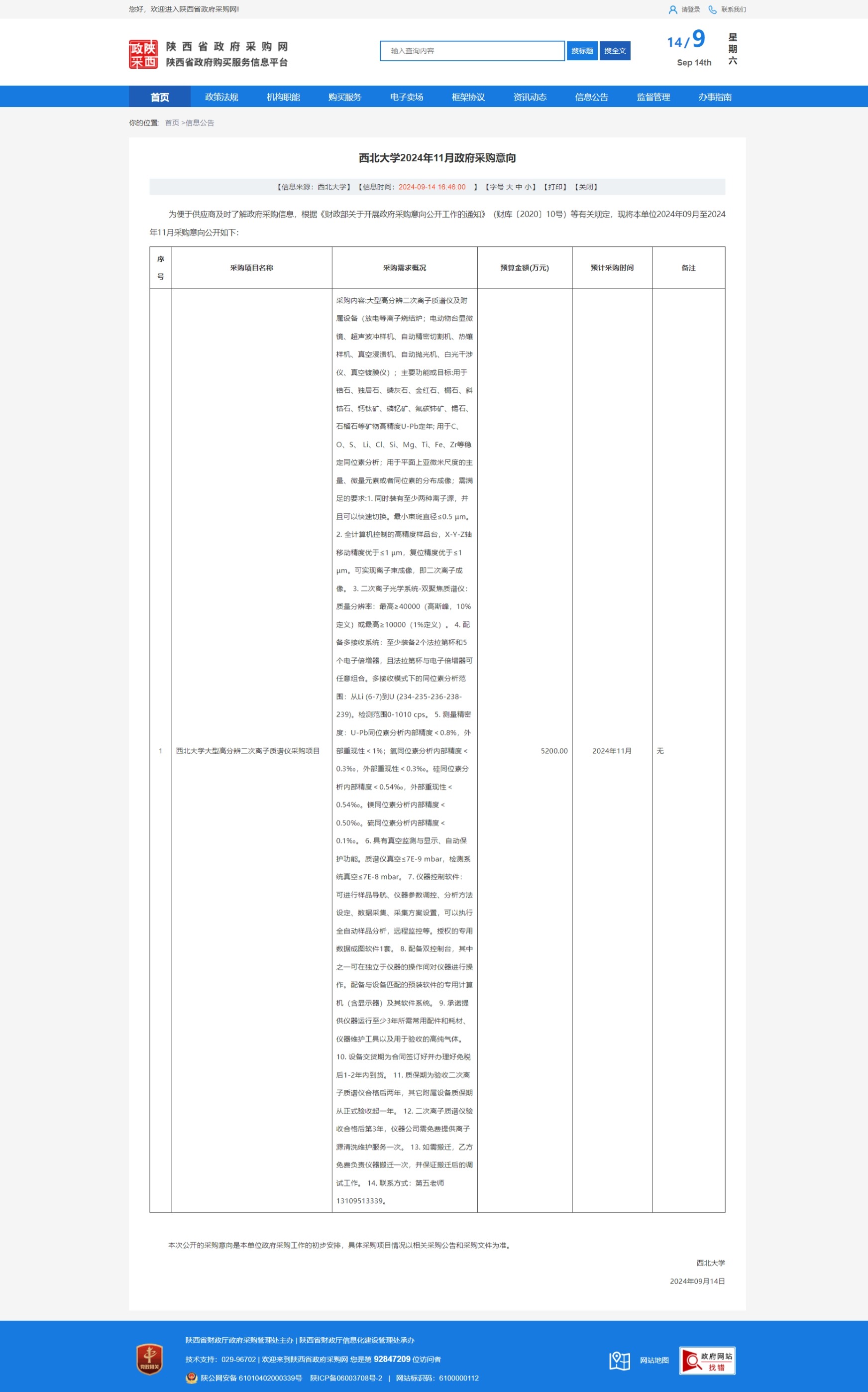 九游会在线登录官网2024年11月政府采购意向 作者: 编辑:采购与招标办公室 时间:2024-09-14 原公告链接:https://www.ccgp-shaanxi.gov.cn/freecms/site/shaanxi/ggxx/info/2024/8a69c24d91d6105a0191efadceb9269b.html?noticeType=59¬iceId=3954bd28-7277-11ef-8063-08c0eb20c666