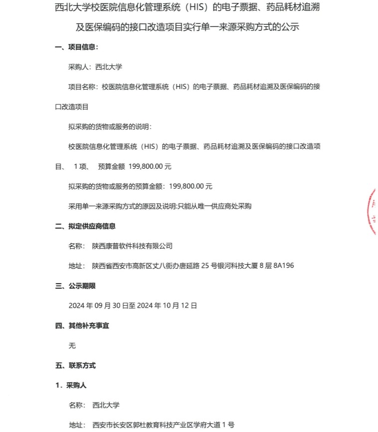九游会在线登录官网校医院信息化管理系统(HIS)电子票据、药品耗材追溯及医保编码接口改造服务项目实行单一来源采购方式的公示