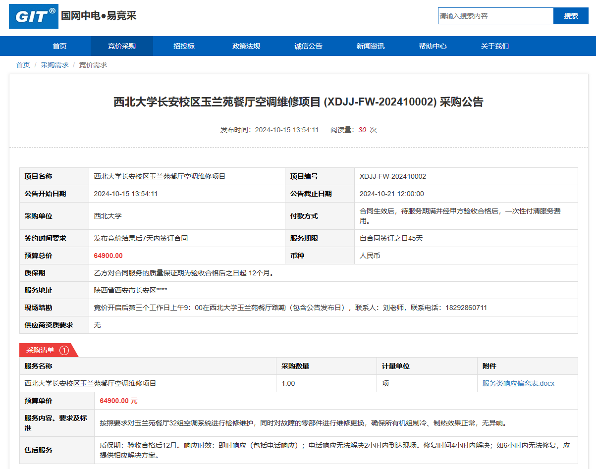 九游会在线登录官网长安校区玉兰苑餐厅空调维修项目(XDJJ-FW-202410002)竞价采购公告 作者:采购与招标办公室 编辑: 时间:2024-10-15 原公告链接:https://www.ejingcai.com.cn/site/bidding/detail/13316