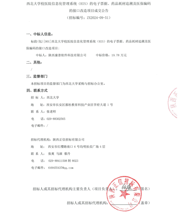 九游会在线登录官网校医院信息化管理系统(HIS)的电子票据、药品耗材追溯及医保编码的接口改造项目成交公告