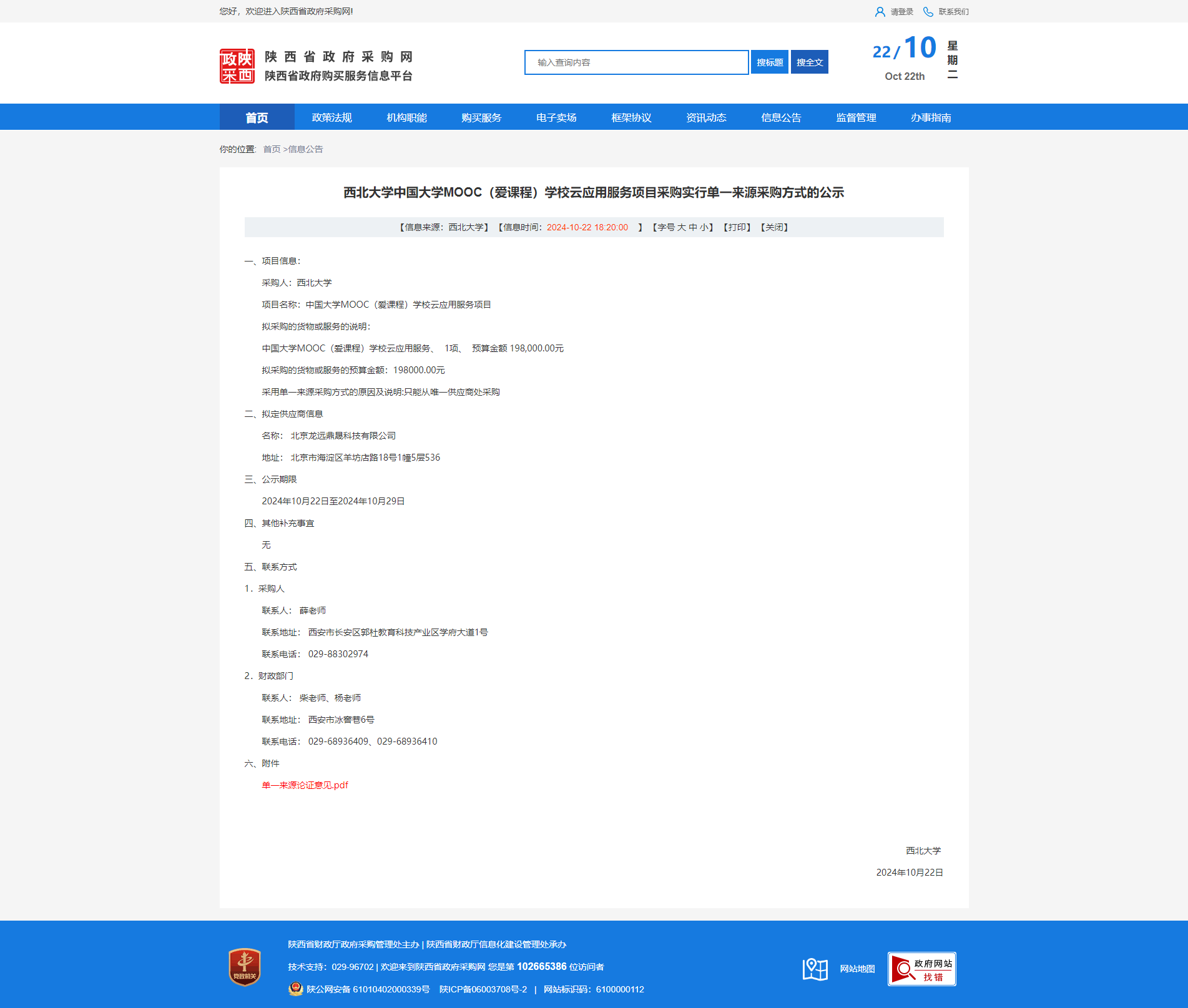 九游会在线登录官网中国大学MOOC(爱课程)学校云应用服务项目采购实行单一来源采购方式的公示