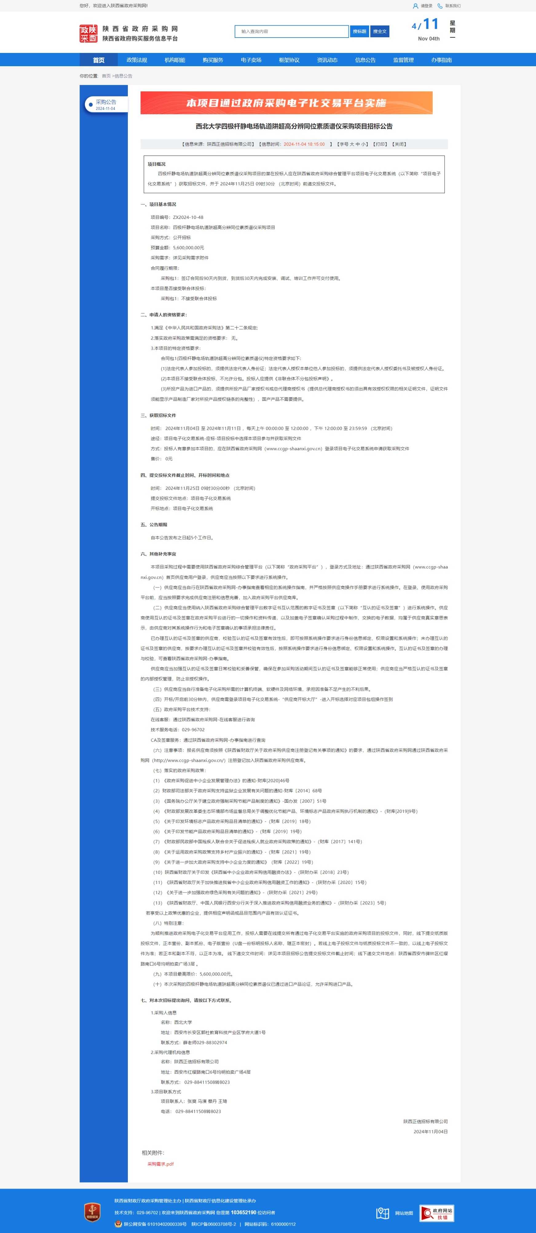 九游会在线登录官网四极杆静电场轨道阱超高分辨同位素质谱仪采购项目招标公告 作者: 编辑:采购与招标办公室 时间:2024-11-04 原公告链接:https://www.ccgp-shaanxi.gov.cn/freecms/site/shaanxi/ggxx/info/2024/8a69c251921857370192f6a2caf239ff.html?noticeType=001011¬iceId=331afdde-9a97-11ef-8063-08c0eb20c666