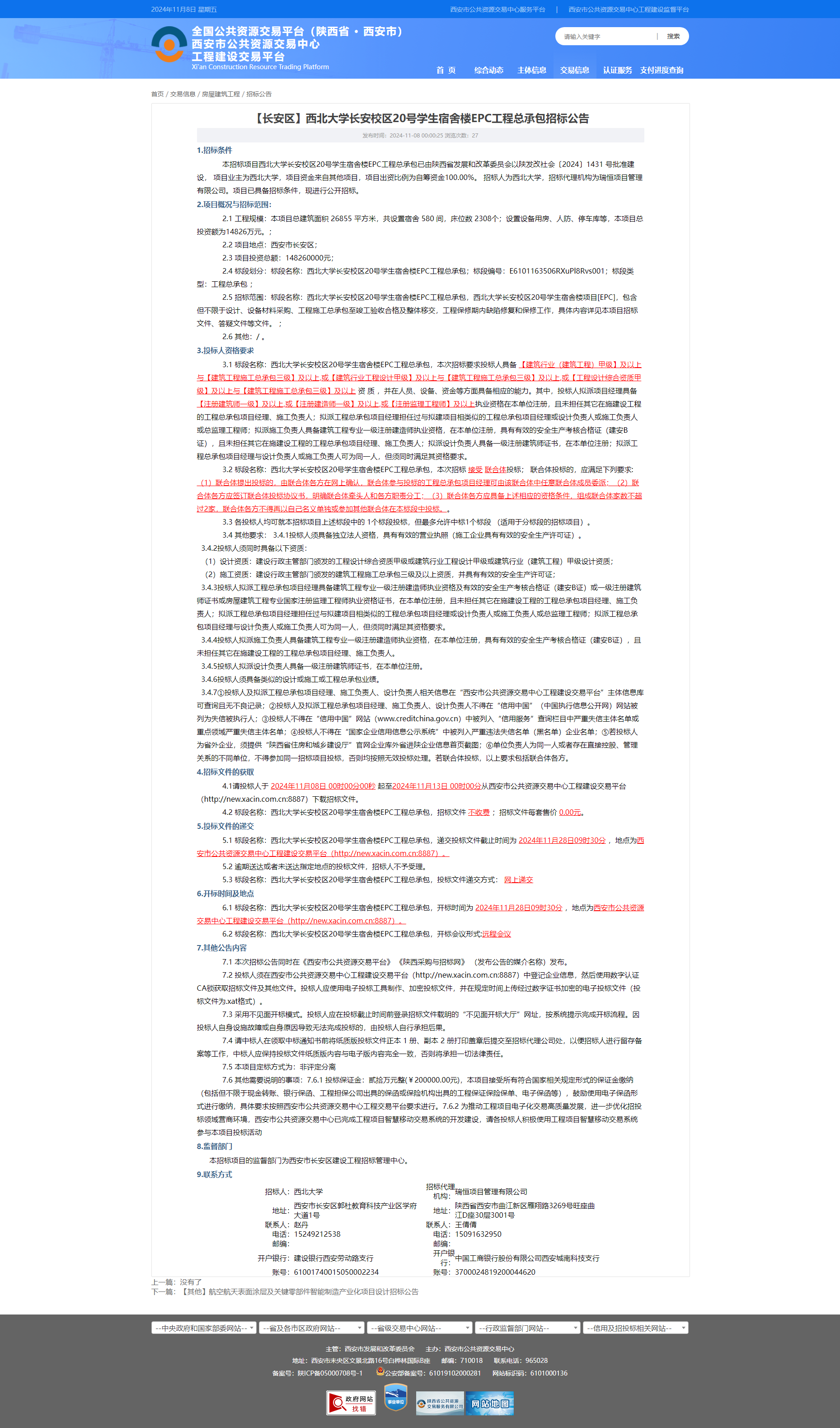 九游会在线登录官网长安校区20号学生宿舍楼EPC工程总承包招标公告