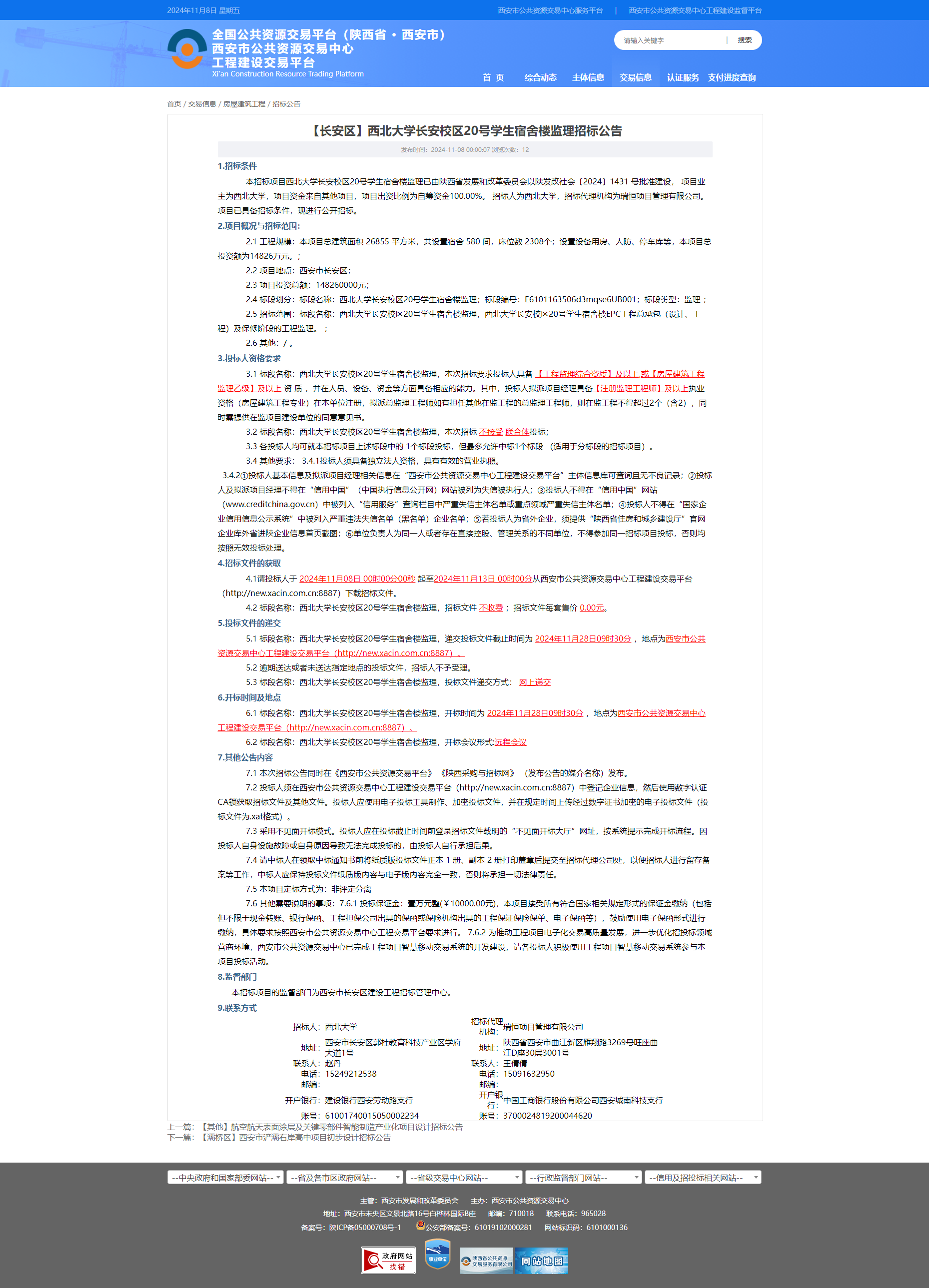 九游会在线登录官网长安校区20号学生宿舍楼监理招标公告