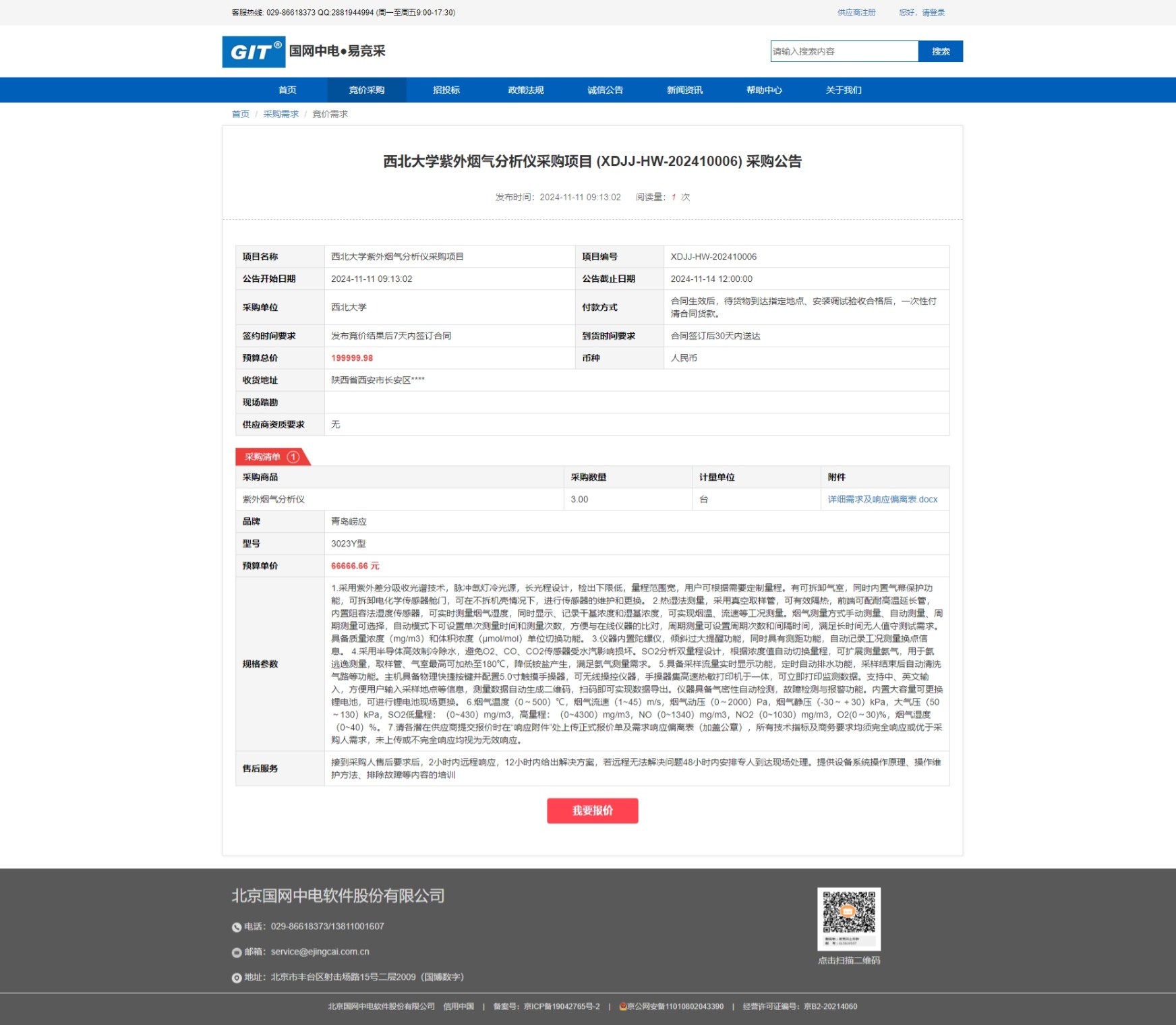 九游会在线登录官网紫外烟气分析仪采购项目 (XDJJ-HW-202410006) 竞价采购公告 作者: 编辑:采购与招标办公室 时间:2024-11-11 原公告链接:https://www.ejingcai.com.cn/site/bidding/detail/14592