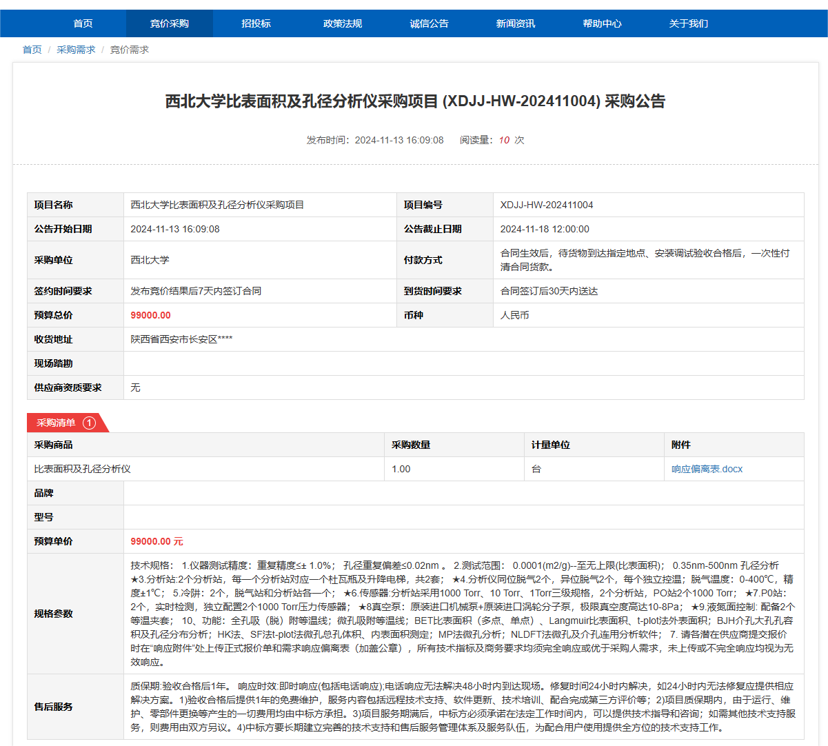 九游会在线登录官网比表面积及孔径分析仪采购项目(XDJJ-HW-202411004)竞价采购公告 作者:采购与招标办公室 编辑: 时间:2024-11-13 原公告链接:https://www.ejingcai.com.cn/site/bidding/detail/14819
