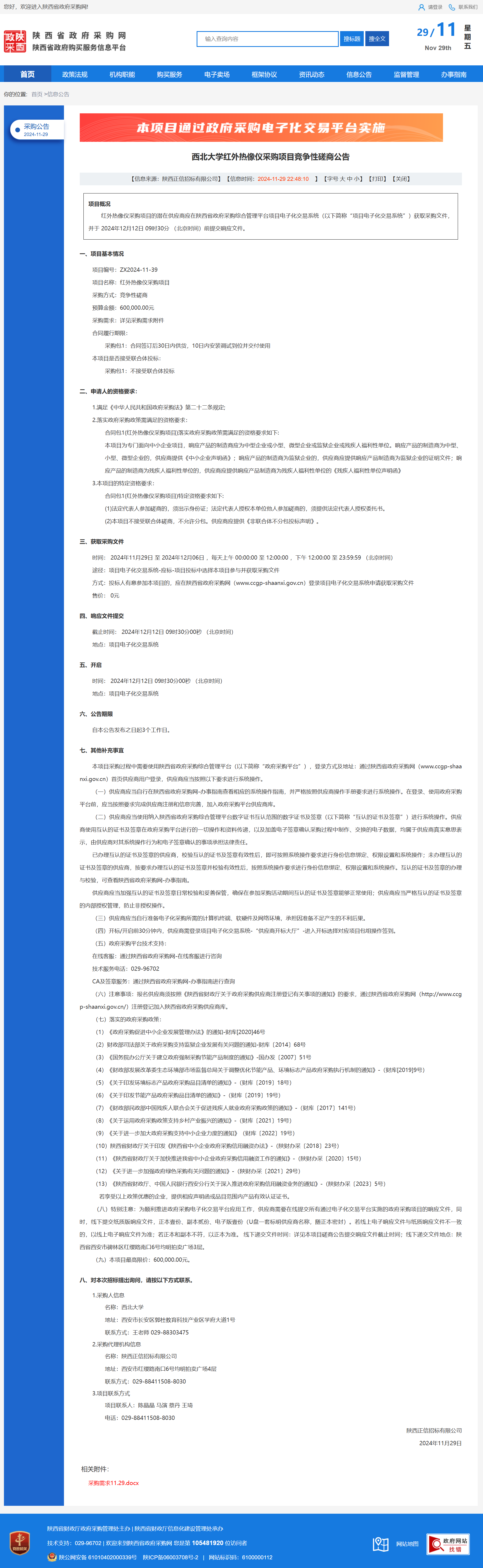 九游会在线登录官网红外热像仪采购项目竞争性磋商公告 作者:采购与招标办公室 编辑: 时间:2024-11-29 原公告链接:http://www.ccgp-shaanxi.gov.cn/freecms/site/shaanxi/ggxx/info/2024/8a69c25192185737019378563f514743.html?noticeType=001016¬iceId=8c82e43c-ae62-11ef-8063-08c0eb20c666