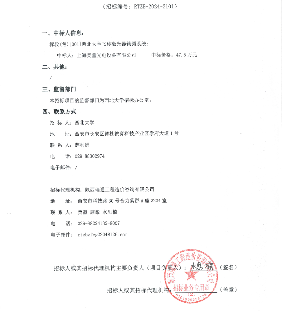 九游会在线登录官网飞秒激光器锁频系统采购项目结果公告 作者: 编辑:薛利娟 时间:2024-12-02 原公告链接:http://bulletin.sntba.com/resultBulletin/2024-12-02/1991782.html