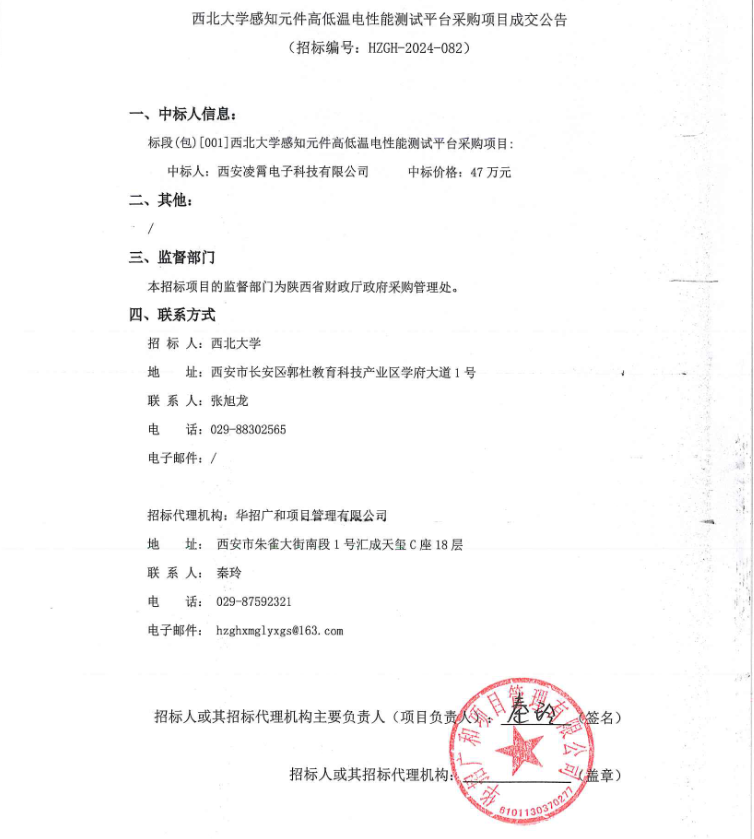 九游会在线登录官网感知元件高低温电性能测试平台采购项目成交公告