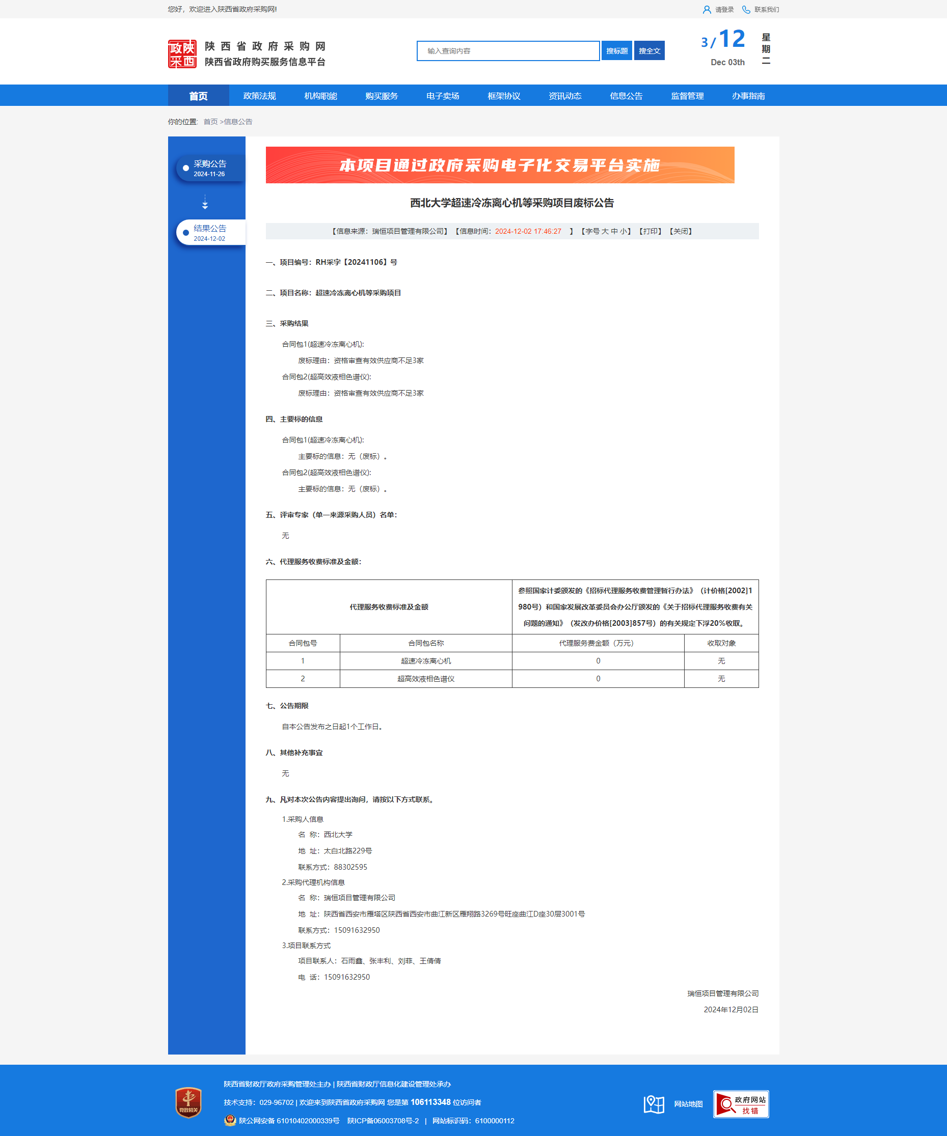 九游会在线登录官网超速冷冻离心机等采购项目废标公告