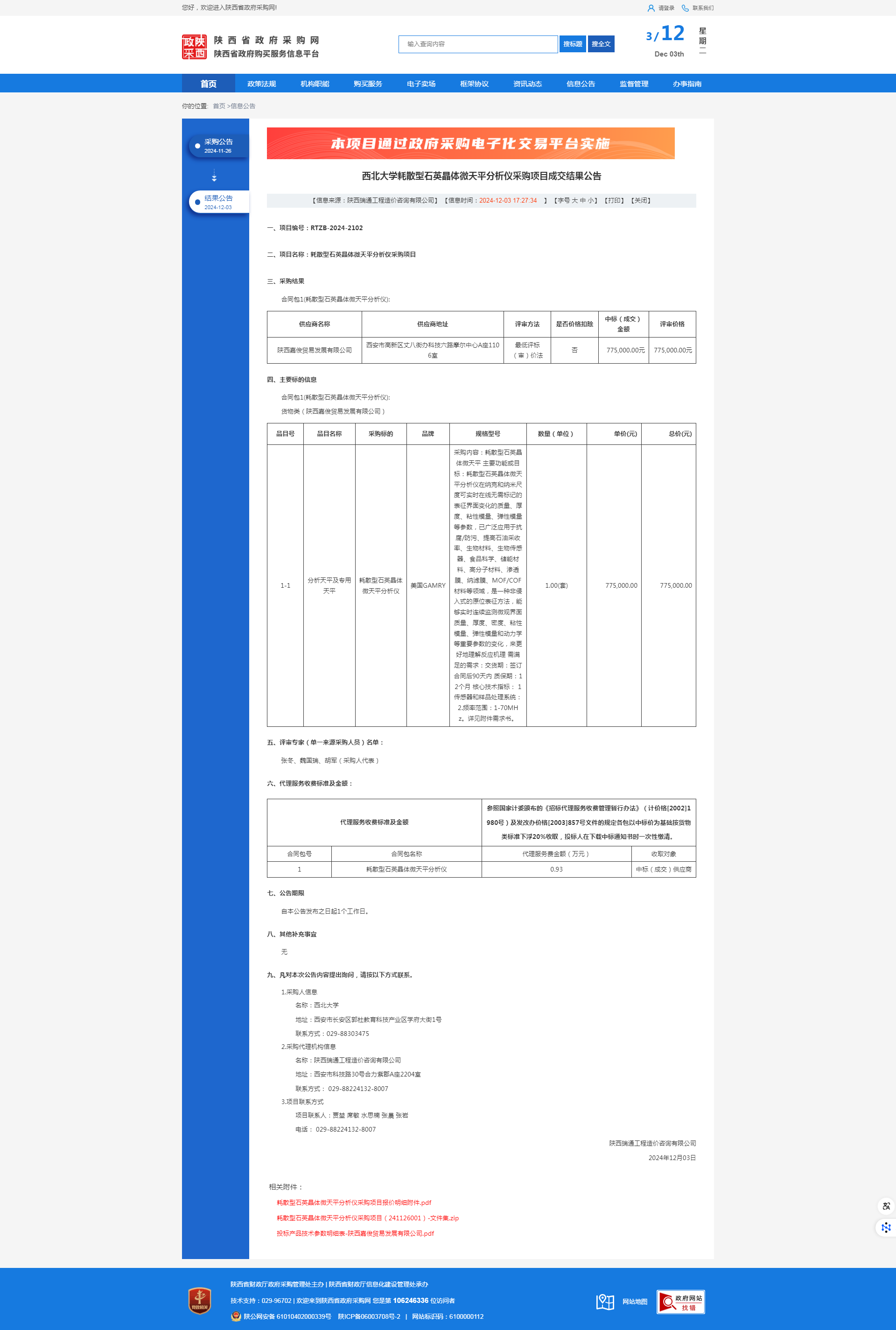 九游会在线登录官网耗散型石英晶体微天平分析仪采购项目成交结果公告 作者:采购与招标办公室 编辑: 时间:2024-12-03 原公告链接:https://www.ccgp-shaanxi.gov.cn/freecms/site/shaanxi/ggxx/info/2024/8a69c2519218573701938bc3ac1a16c6.html?noticeType=001023¬iceId=6e7b31eb-b15a-11ef-8063-08c0eb20c666