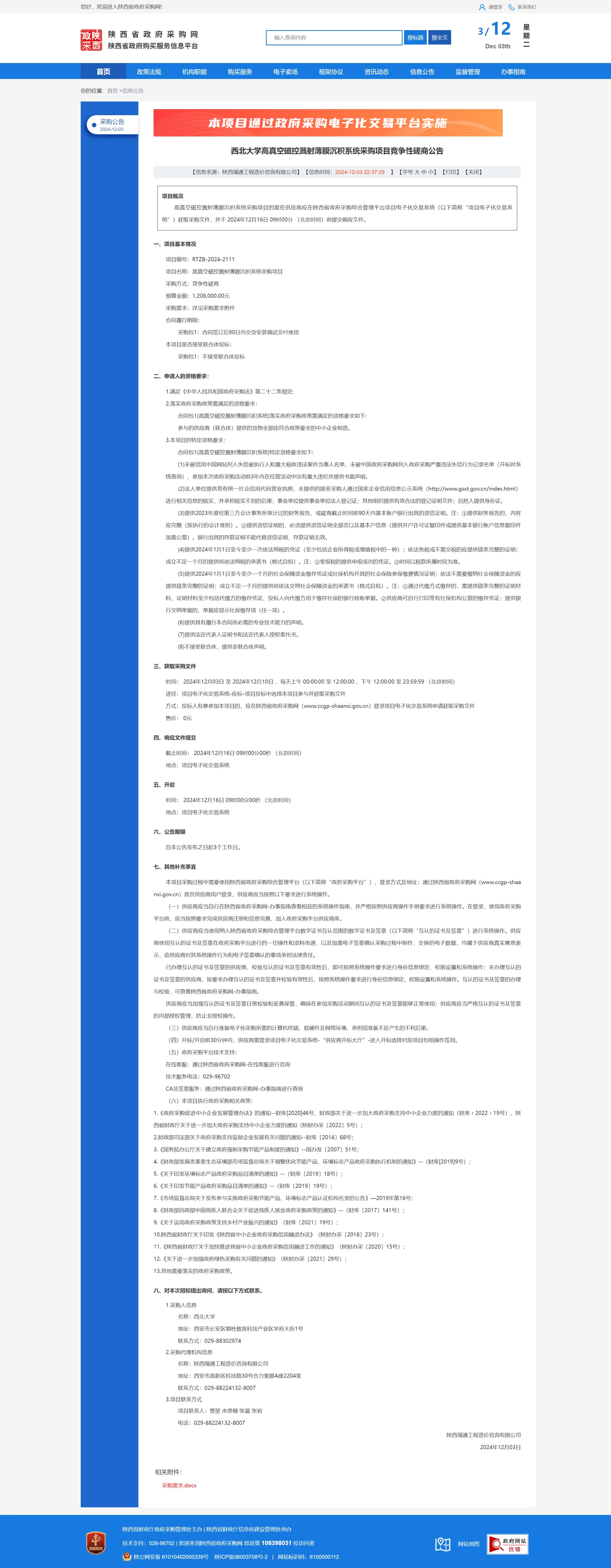 九游会在线登录官网高真空磁控溅射薄膜沉积系统采购项目竞争性磋商公告 作者: 编辑:薛利娟 时间:2024-12-03 原公告链接:https://www.ccgp-shaanxi.gov.cn/freecms/site/shaanxi/ggxx/info/2024/8a69c95d921859f001938cef122366bb.html?noticeType=001016¬iceId=ba4c696e-b185-11ef-8063-08c0eb20c666