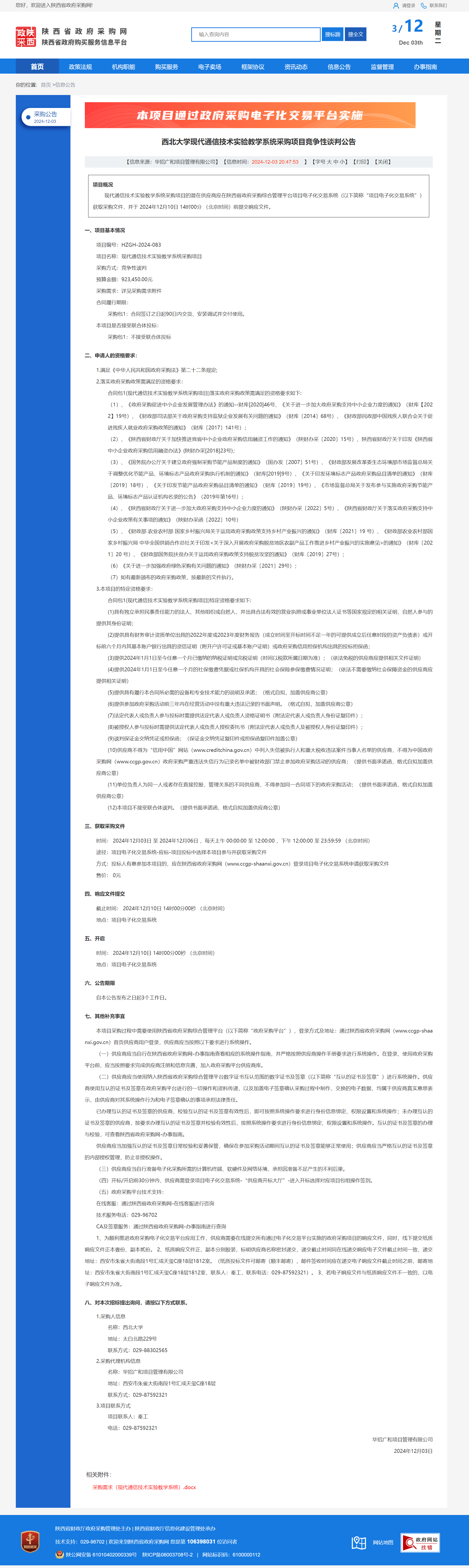 九游会在线登录官网现代通信技术实验教学系统采购项目竞争性谈判公告
