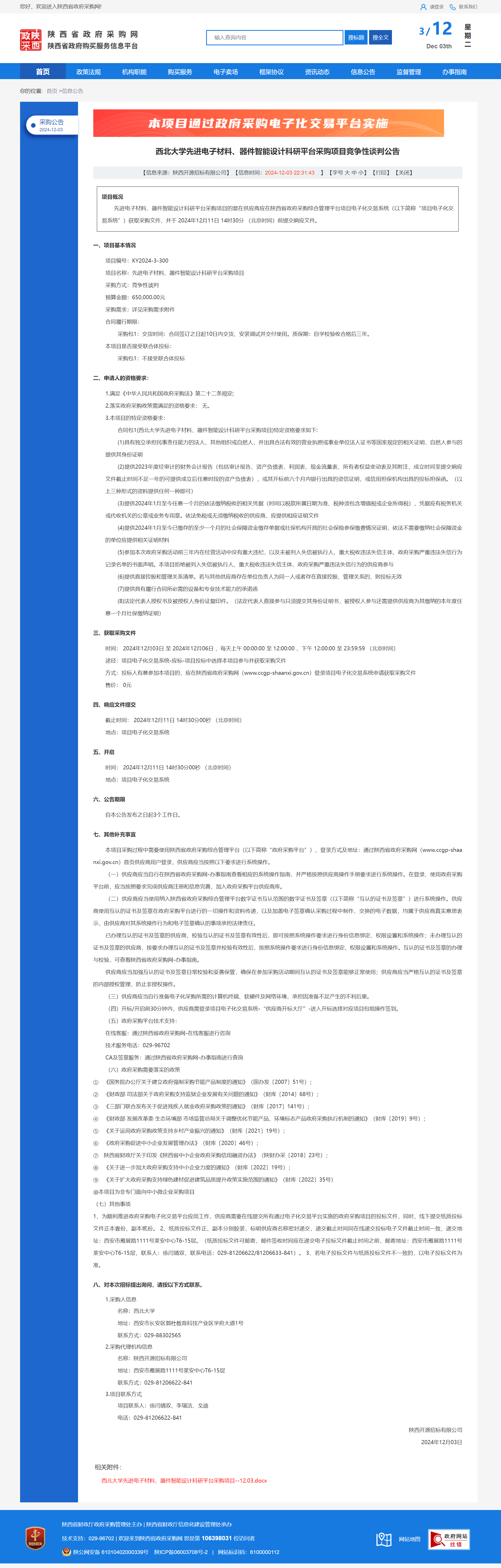九游会在线登录官网先进电子材料、器件智能设计科研平台采购项目竞争性谈判公告