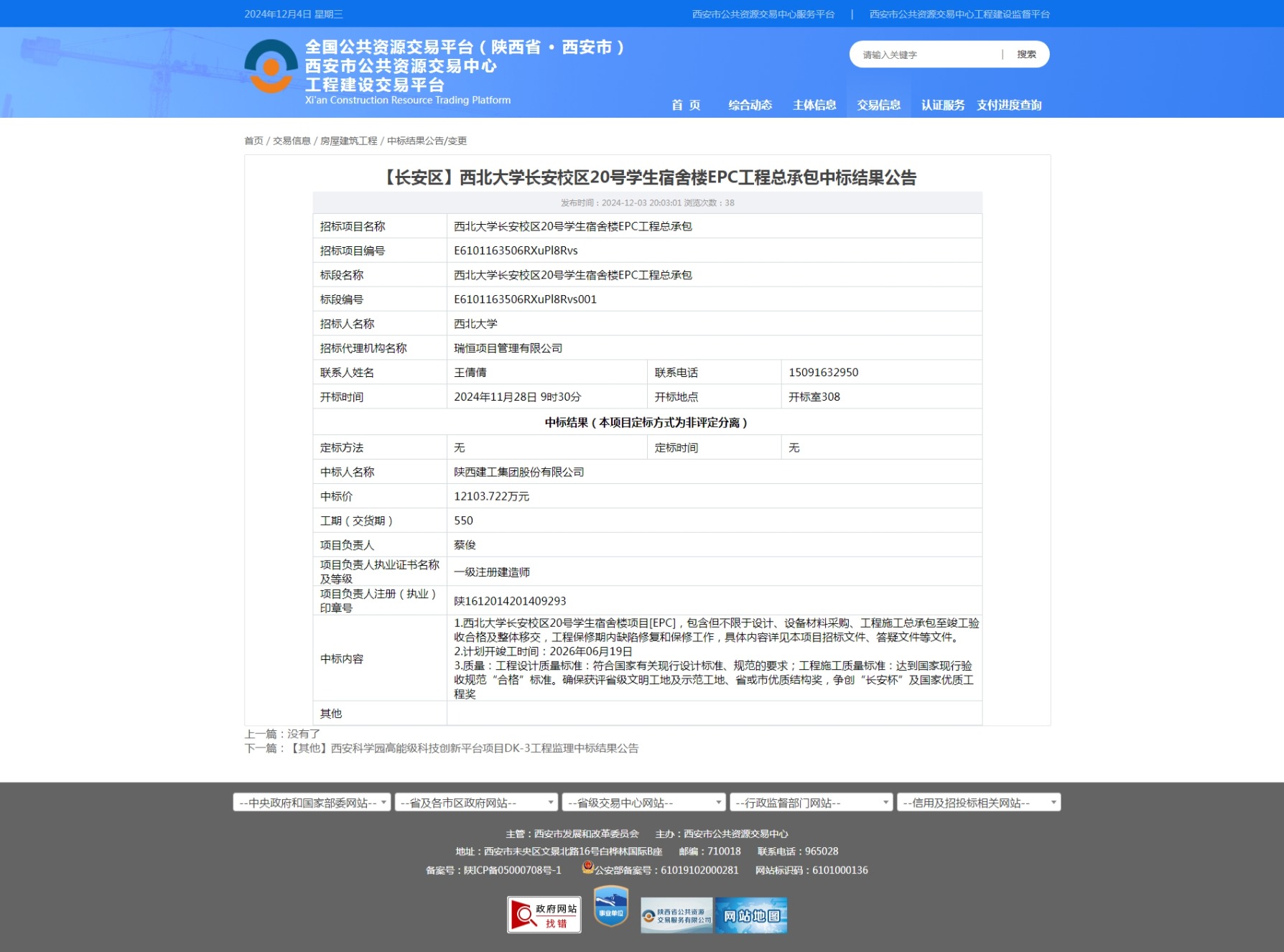 九游会在线登录官网长安校区20号学生宿舍楼EPC工程总承包中标结果公告