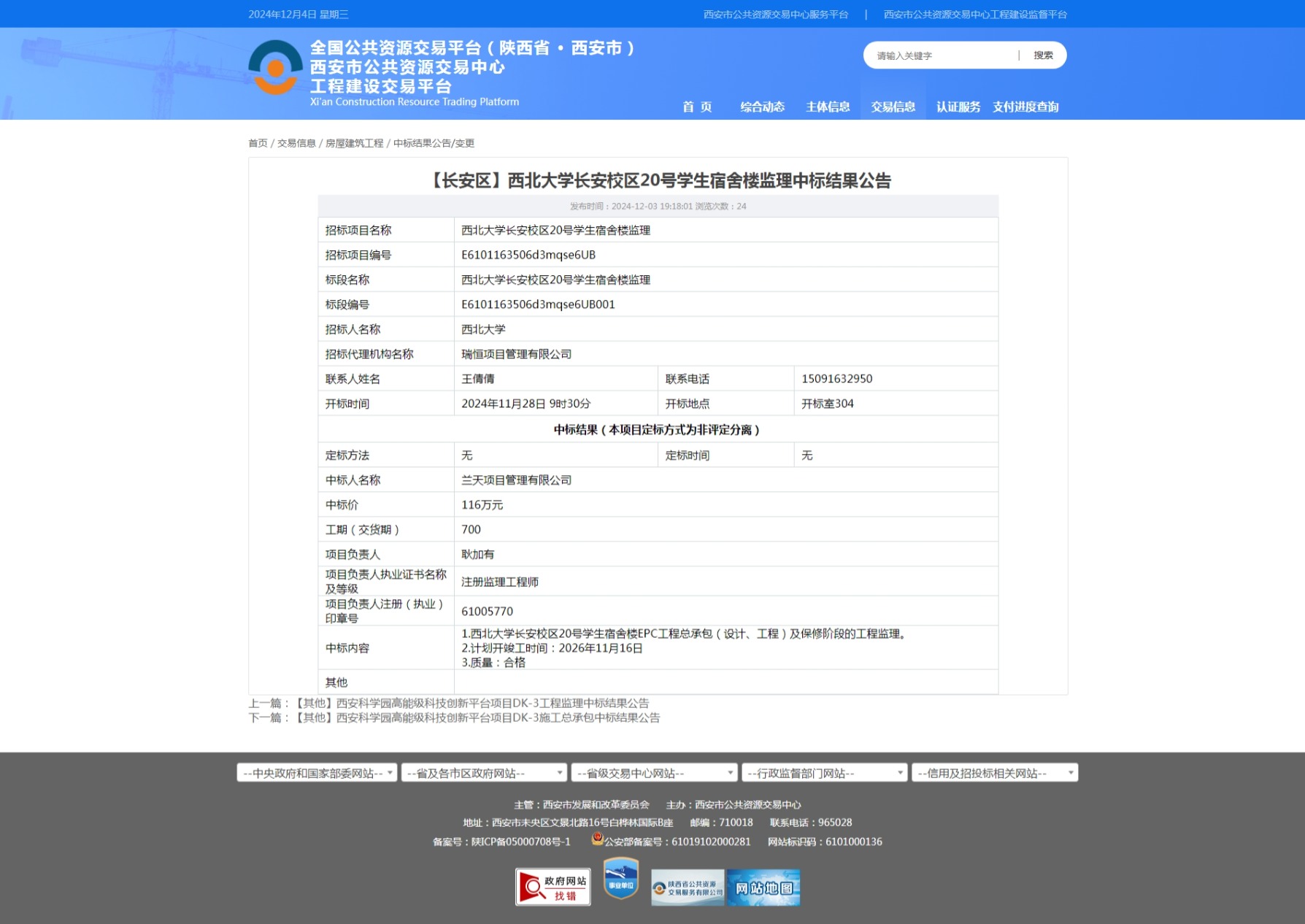 九游会在线登录官网长安校区20号学生宿舍楼监理中标结果公告