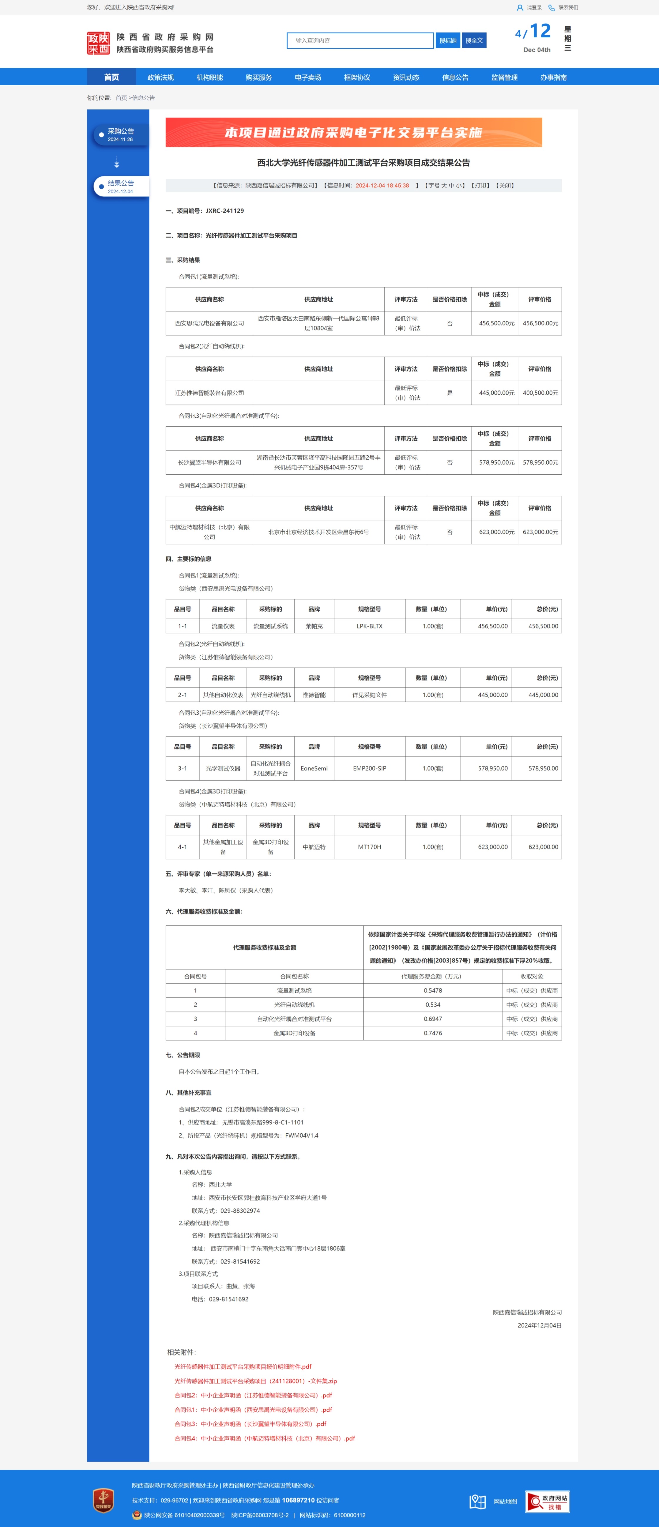 九游会在线登录官网光纤传感器件加工测试平台采购项目成交结果公告 作者: 编辑:薛利娟 时间:2024-12-04 原公告链接:https://www.ccgp-shaanxi.gov.cn/freecms/site/shaanxi/ggxx/info/2024/8a69c44e9218572b01939102d4831058.html?noticeType=001023¬iceId=81946fcd-b22e-11ef-8063-08c0eb20c666