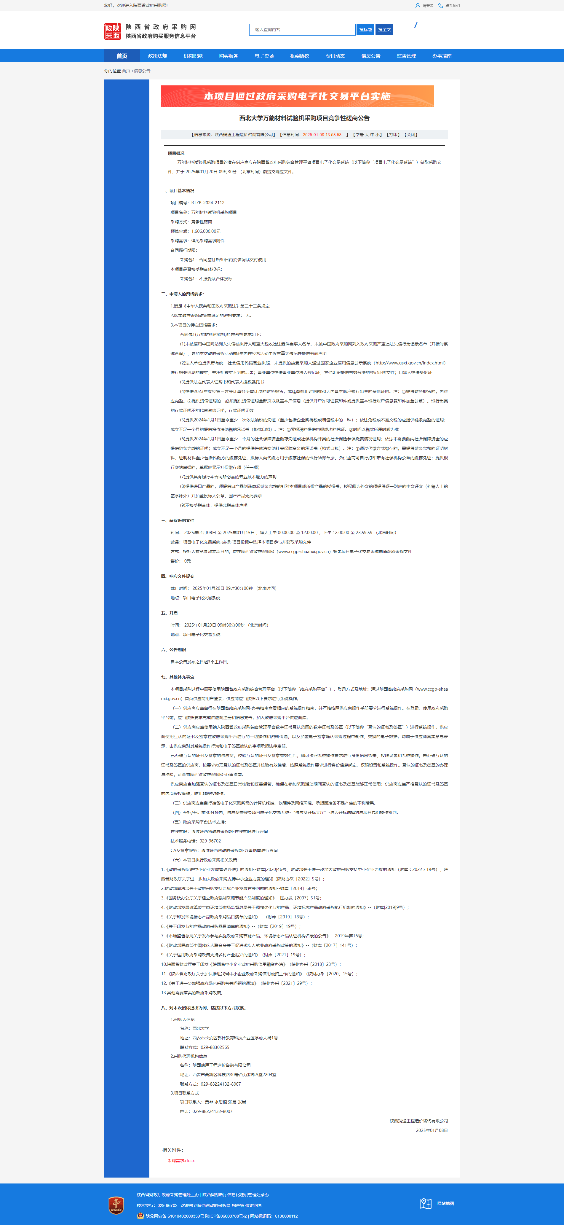九游会在线登录官网万能材料试验机采购项目竞争性磋商公告