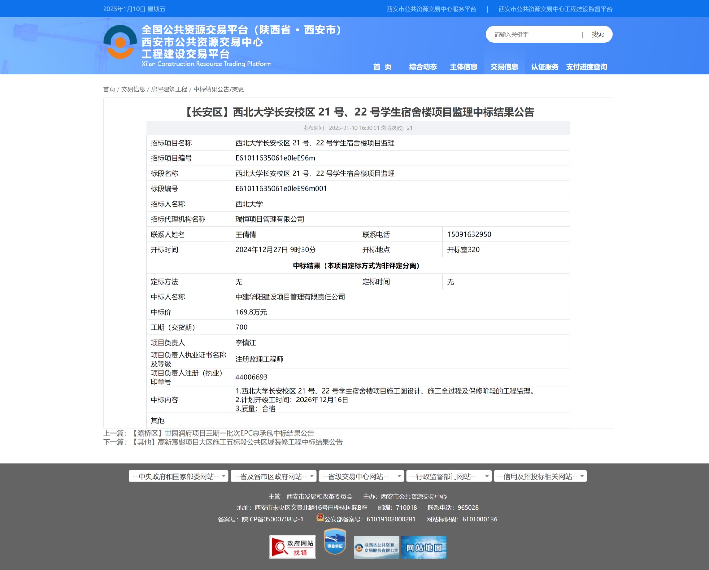 九游会在线登录官网长安校区 21 号、22 号学生宿舍楼项目监理中标结果公告