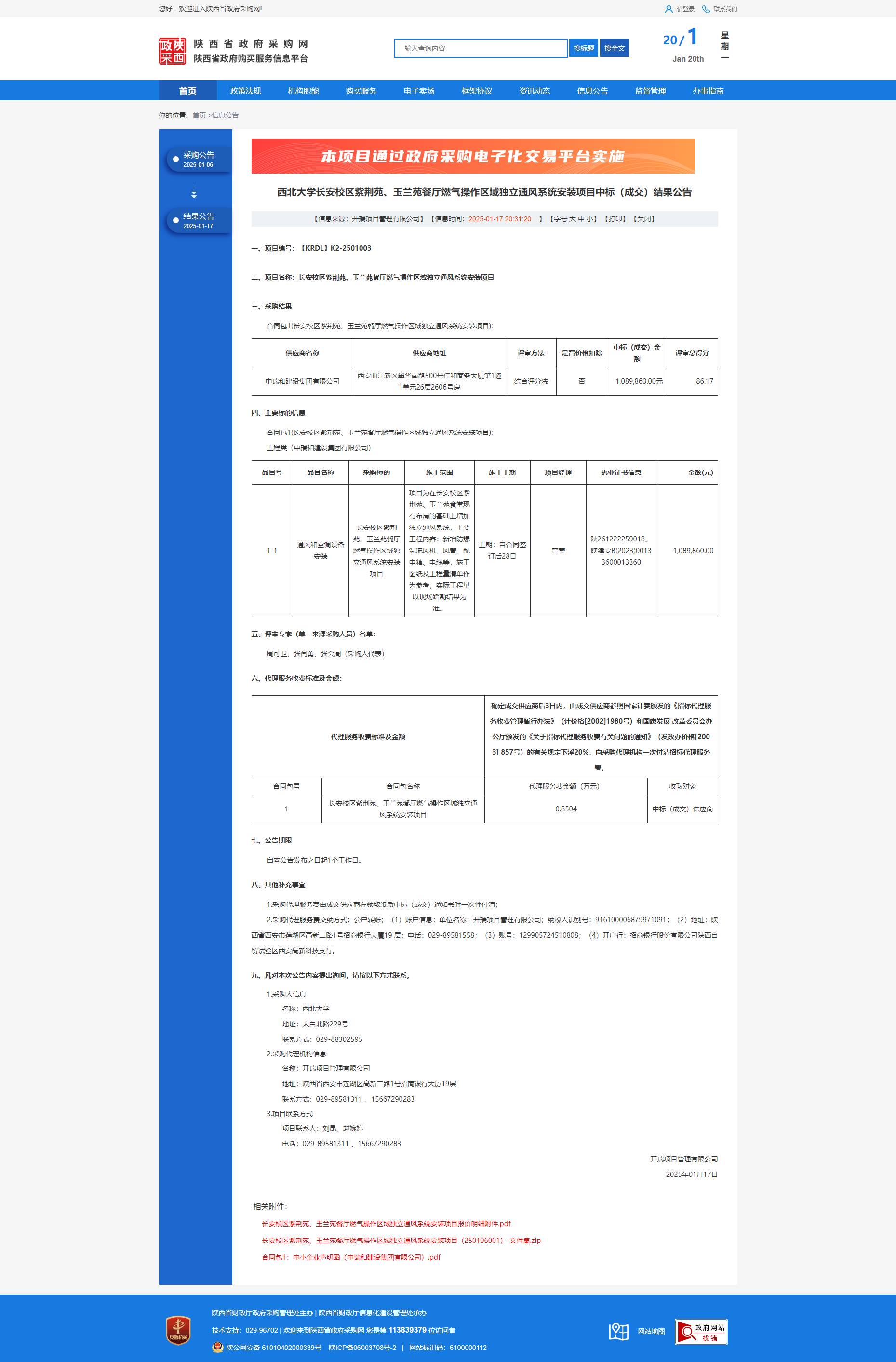 九游会在线登录官网长安校区紫荆苑、玉兰苑餐厅燃气操作区域独立通风系统安装项目中标(成交)结果公告