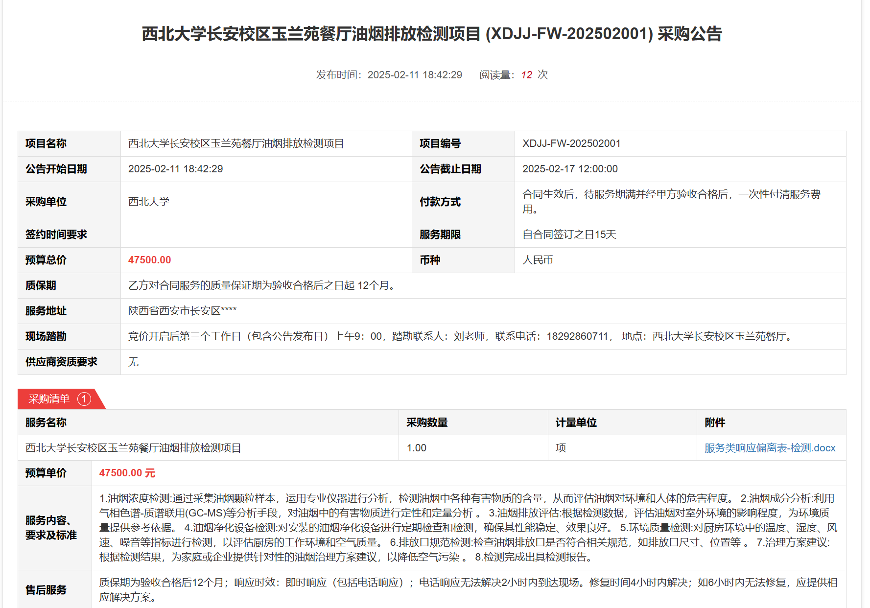 九游会在线登录官网长安校区玉兰苑餐厅油烟排放检测项目(XDJJ-FW-202502001)竞价采购公告 作者:采购与招标办公室 编辑: 时间:2025-02-11 原公告链接:https://www.ejingcai.com.cn/site/bidding/detail/16498