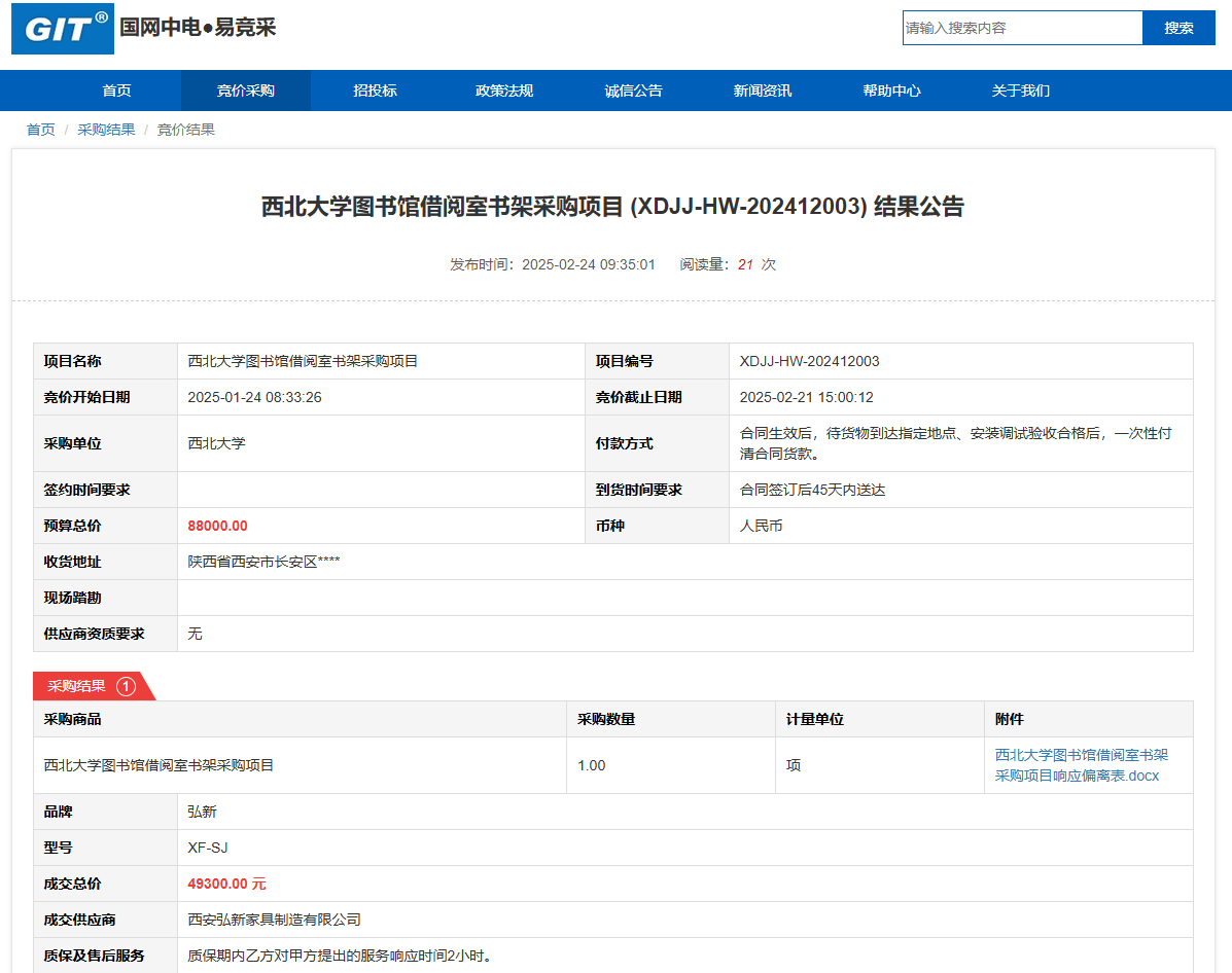九游会在线登录官网图书馆借阅室书架采购项目(XDJJ-HW-202412003)竞价结果公告 作者:采购与招标办公室 编辑: 时间:2025-02-24 原公告链接:https://www.ejingcai.com.cn/site/bidding/detail/16596
