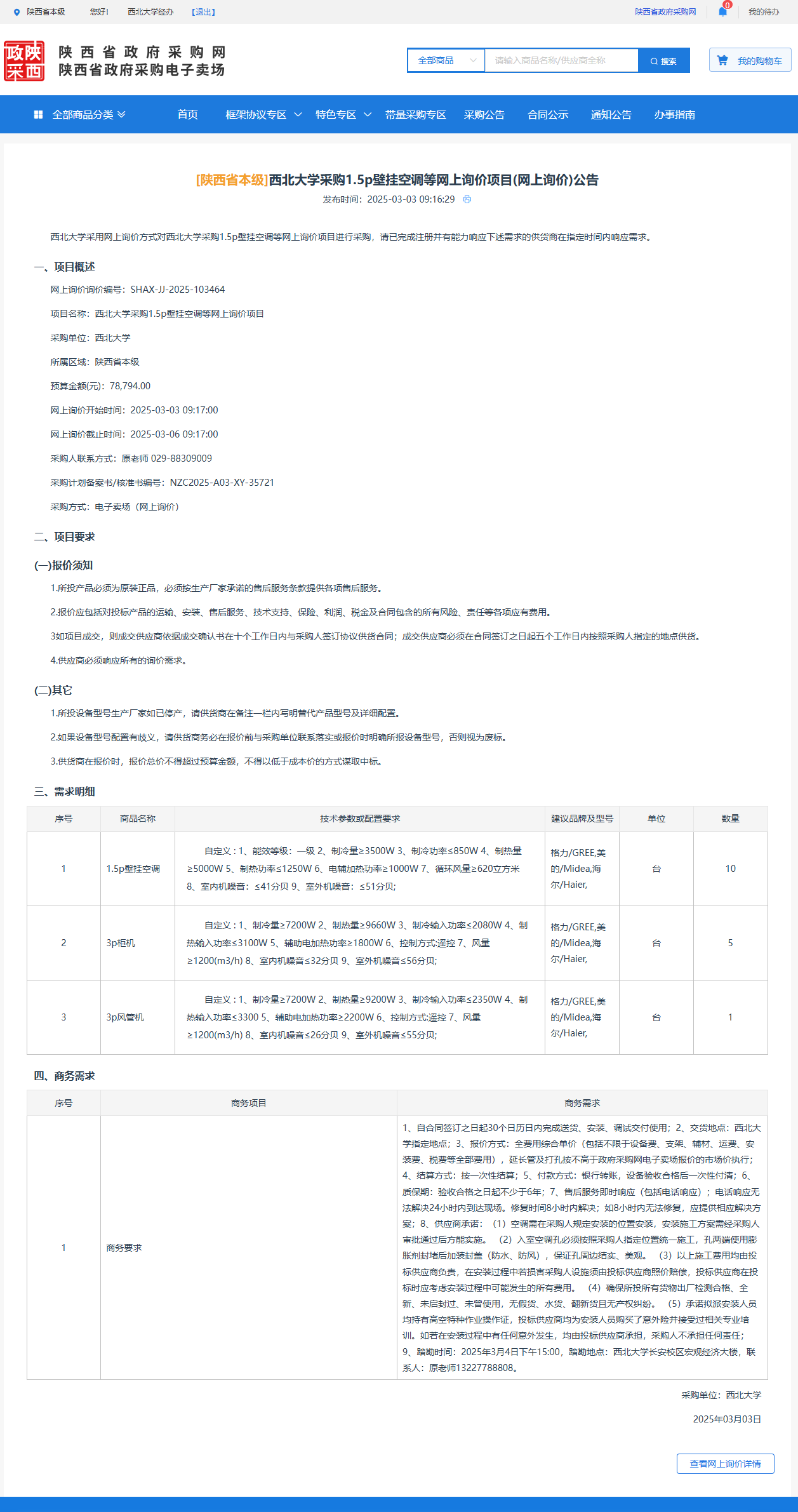 九游会在线登录官网采购1.5p壁挂空调等网上询价项目(网上询价)公告 作者:采购与招标办公室 编辑: 时间:2025-03-03 原公告链接:https://www.ccgp-shaanxi.gov.cn/gpmall-main-web/basic/noticeDetail?noticeGuid=7295516810999431168