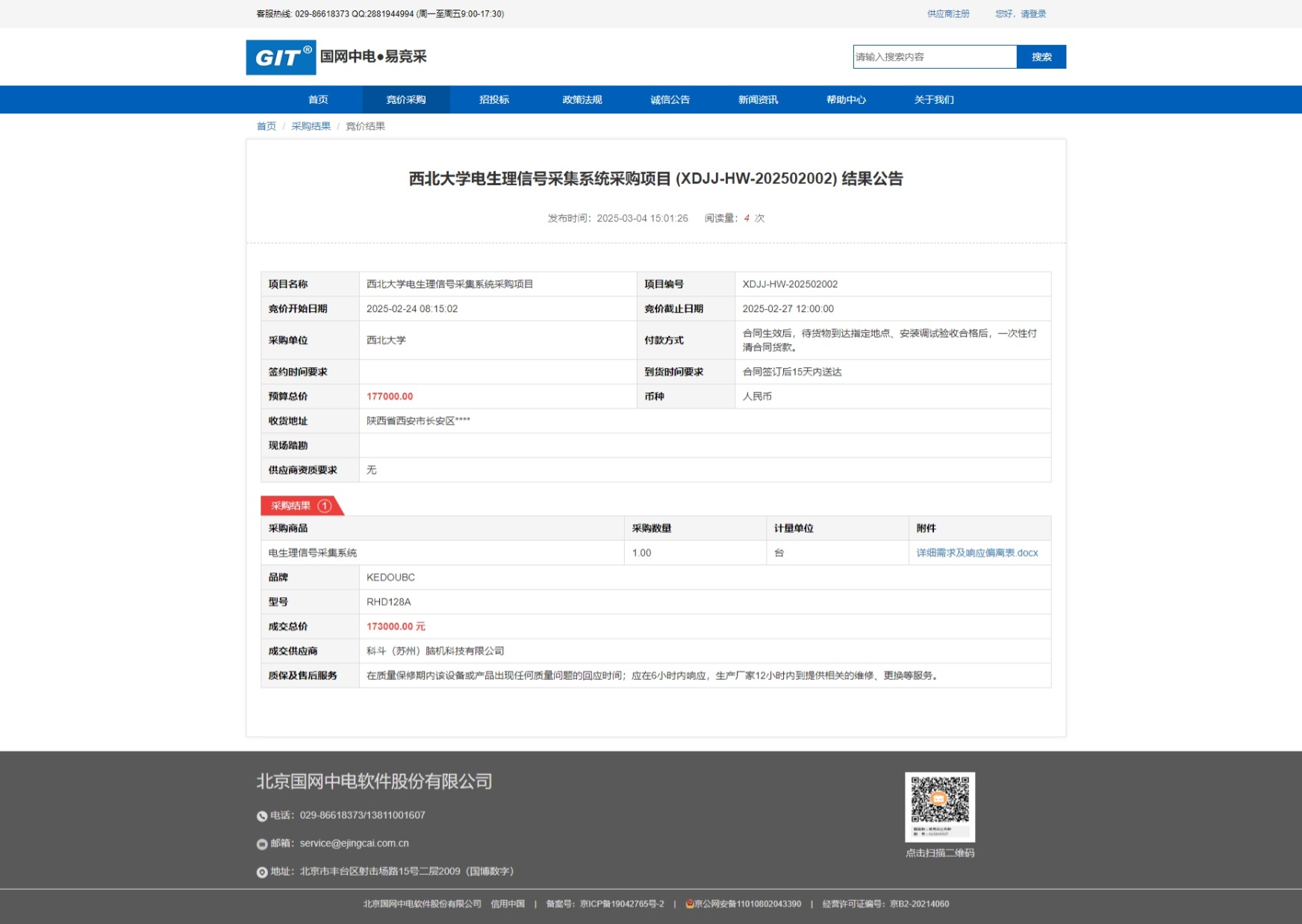 九游会在线登录官网电生理信号采集系统采购项目 (XDJJ-HW-202502002) 竞价结果公告 作者: 编辑:采购与招标办公室 时间:2025-03-04 原公告链接:https://www.ejingcai.com.cn/site/bidding/detail/16713
