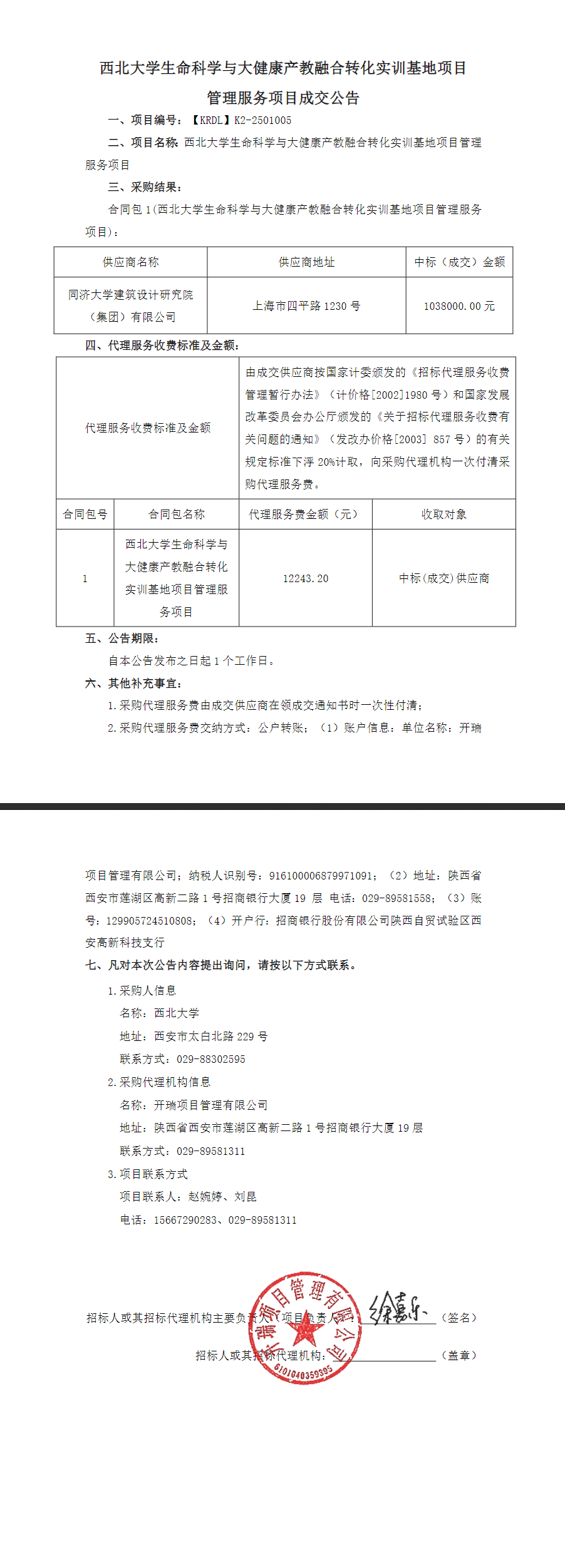 九游会在线登录官网生命科学与大健康产教融合转化实训基地项目管理服务项目成交公告