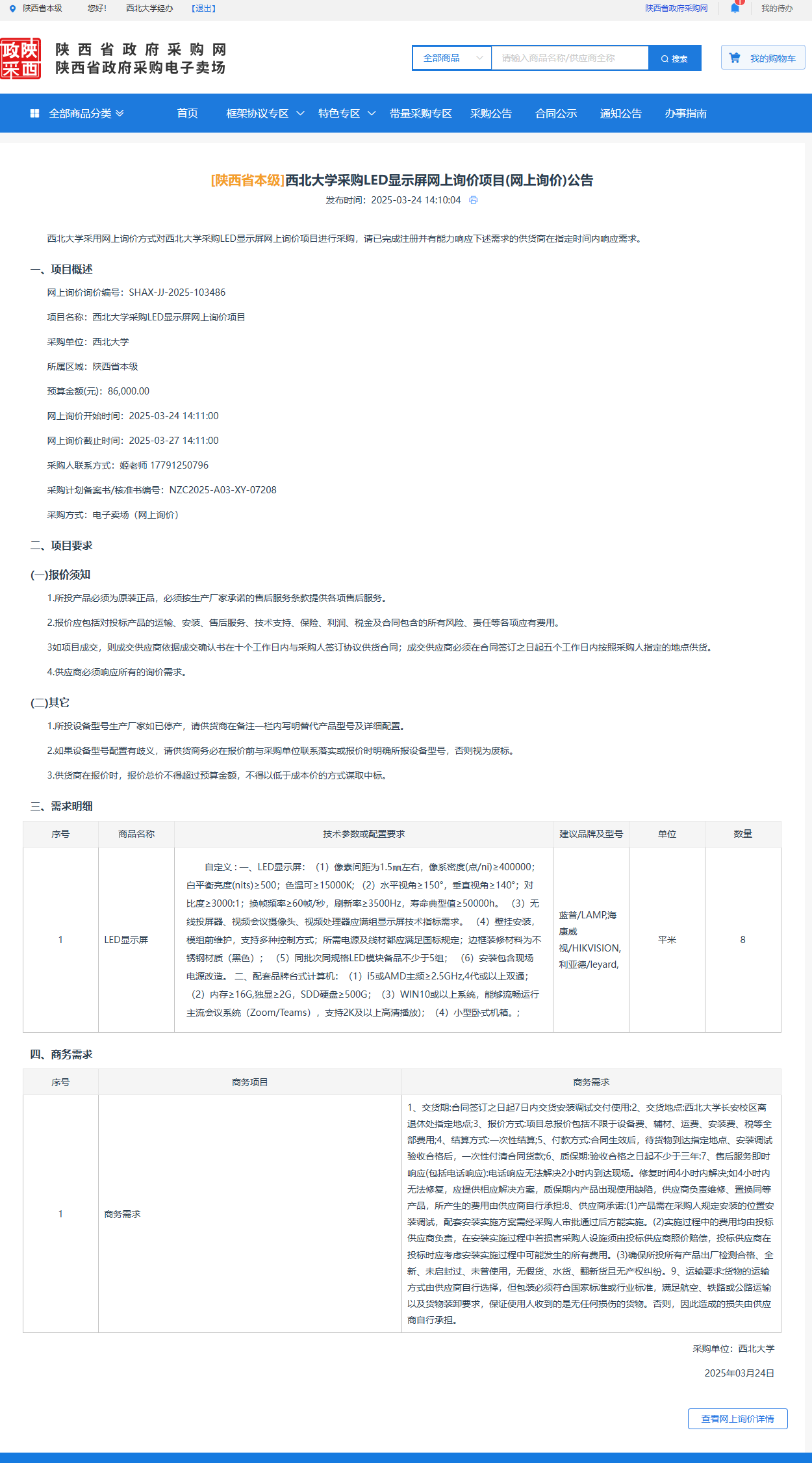 九游会在线登录官网采购LED显示屏等网上询价项目(网上询价)公告 作者:采购与招标办公室 编辑: 时间:2025-03-24 原公告链接:https://www.ccgp-shaanxi.gov.cn/gpmall-main-web/basic/noticeDetail?noticeGuid=7303200839336919040