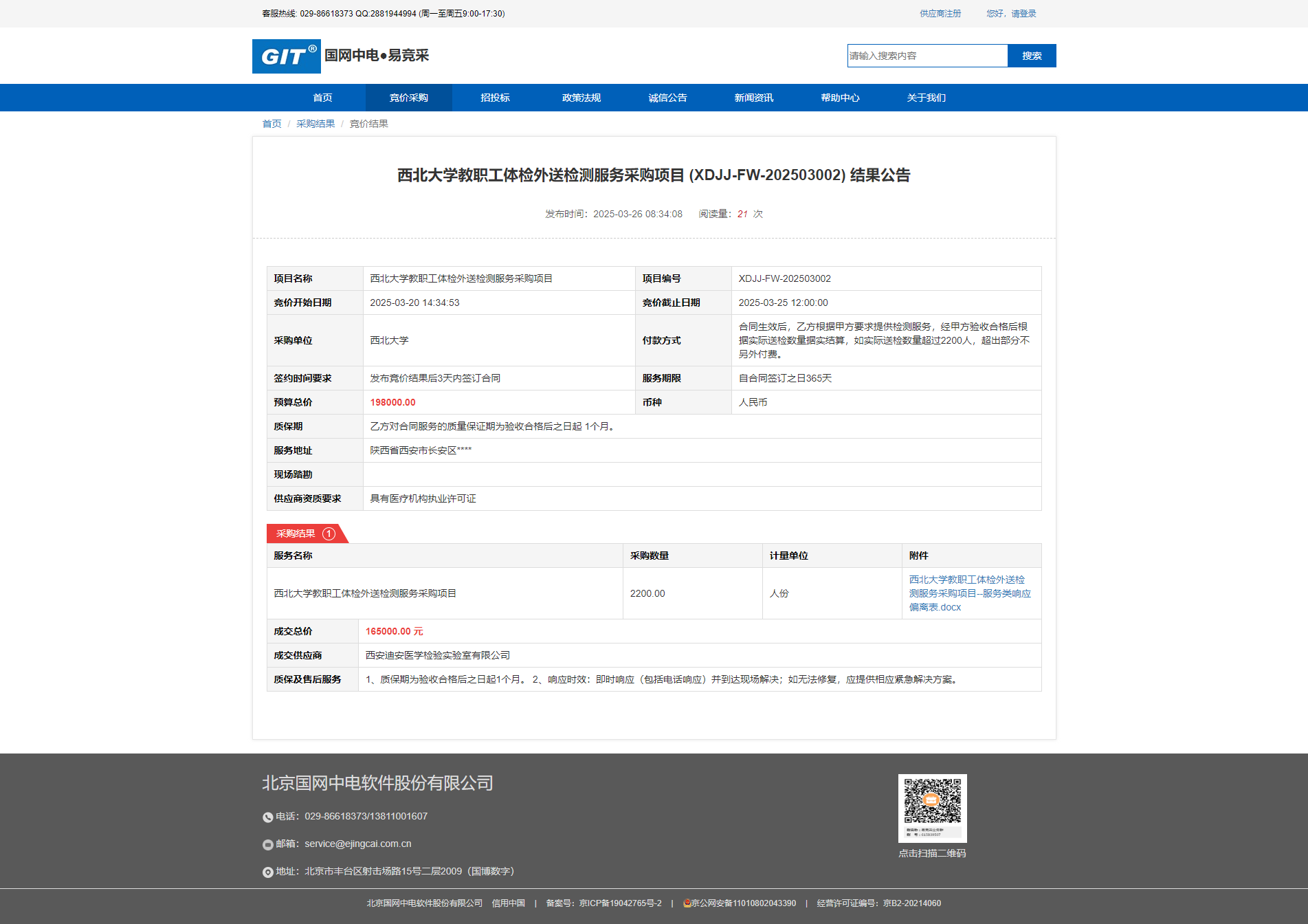 九游会在线登录官网教职工体检外送检测服务采购项目 (XDJJ-FW-202503002) 结果公告