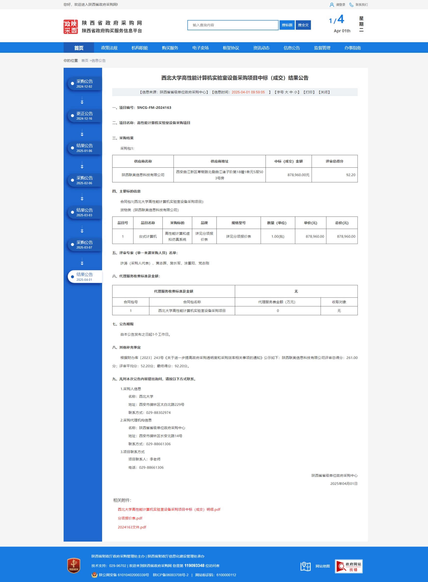 九游会在线登录官网高性能计算机实验室设备采购项目中标(成交)结果公告 作者: 编辑:采购与招标办公室 时间:2025-04-01 原公告链接:https://www.ccgp-shaanxi.gov.cn/freecms/site/shaanxi/ggxx/info/2025/8a69c0959566cd7e0195eef3776f2f16.html?noticeType=001021¬iceId=b788f147-0e9e-11f0-8063-08c0eb20c666