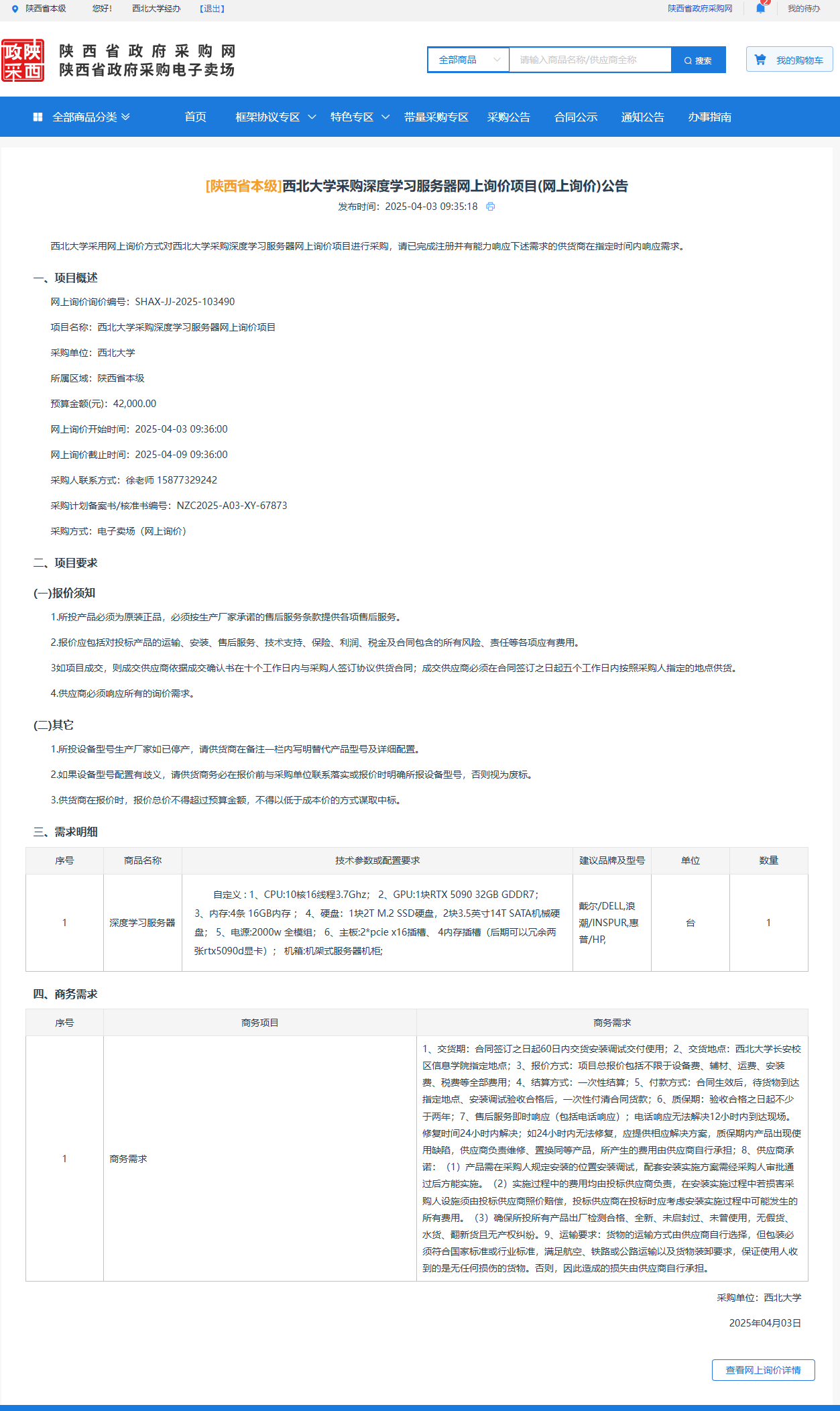 九游会在线登录官网采购深度学习服务器网上询价项目(网上询价)公告 作者:采购与招标办公室 编辑: 时间:2025-04-03 原公告链接:https://www.ccgp-shaanxi.gov.cn/gpmall-main-web/basic/noticeDetail?noticeGuid=7306755570823004160