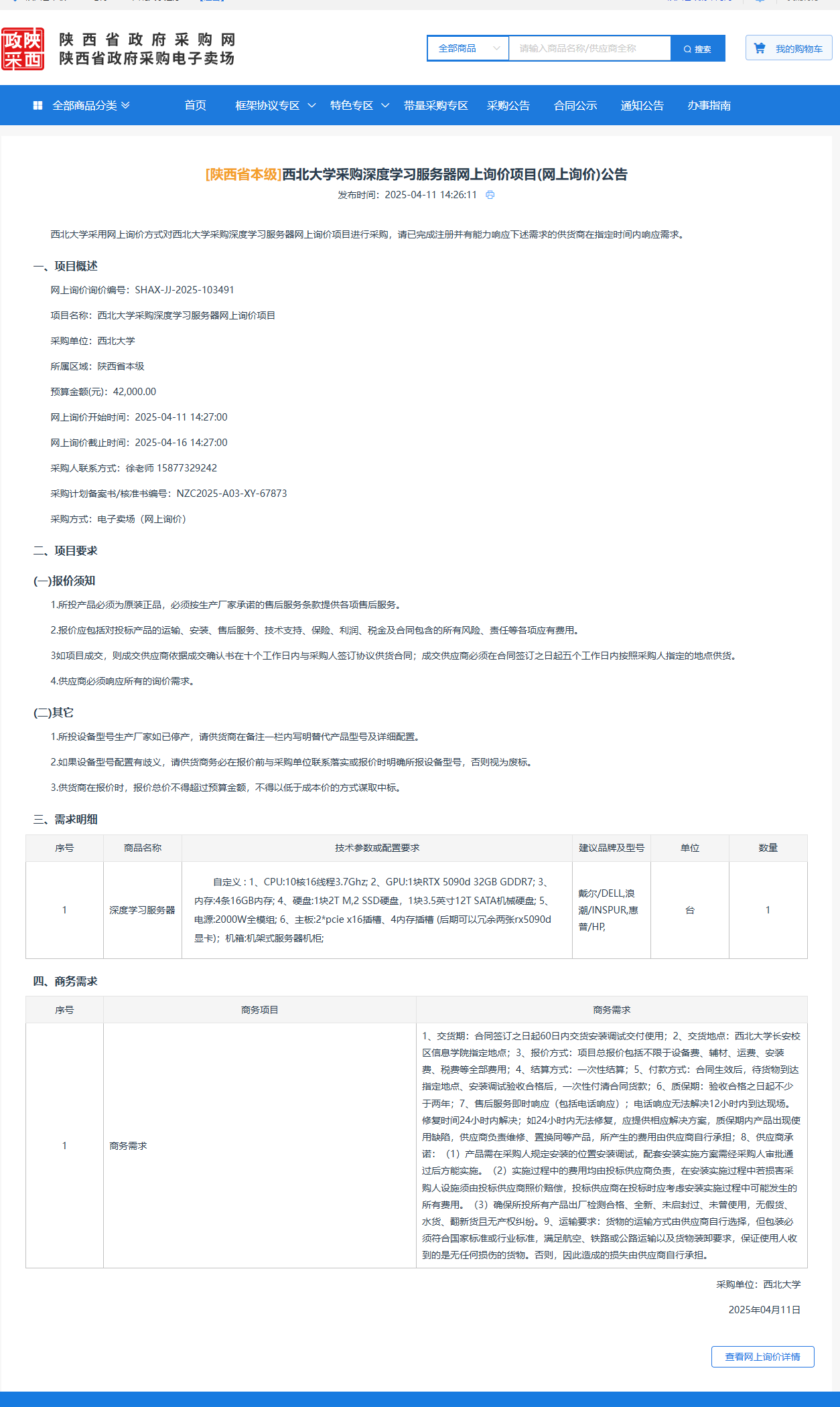 九游会在线登录官网采购深度学习服务器网上询价项目(网上询价)公告 作者:采购与招标办公室 编辑: 时间:2025-04-11 原公告链接:https://www.ccgp-shaanxi.gov.cn/gpmall-main-web/basic/noticeDetail?noticeGuid=7309727879137525760