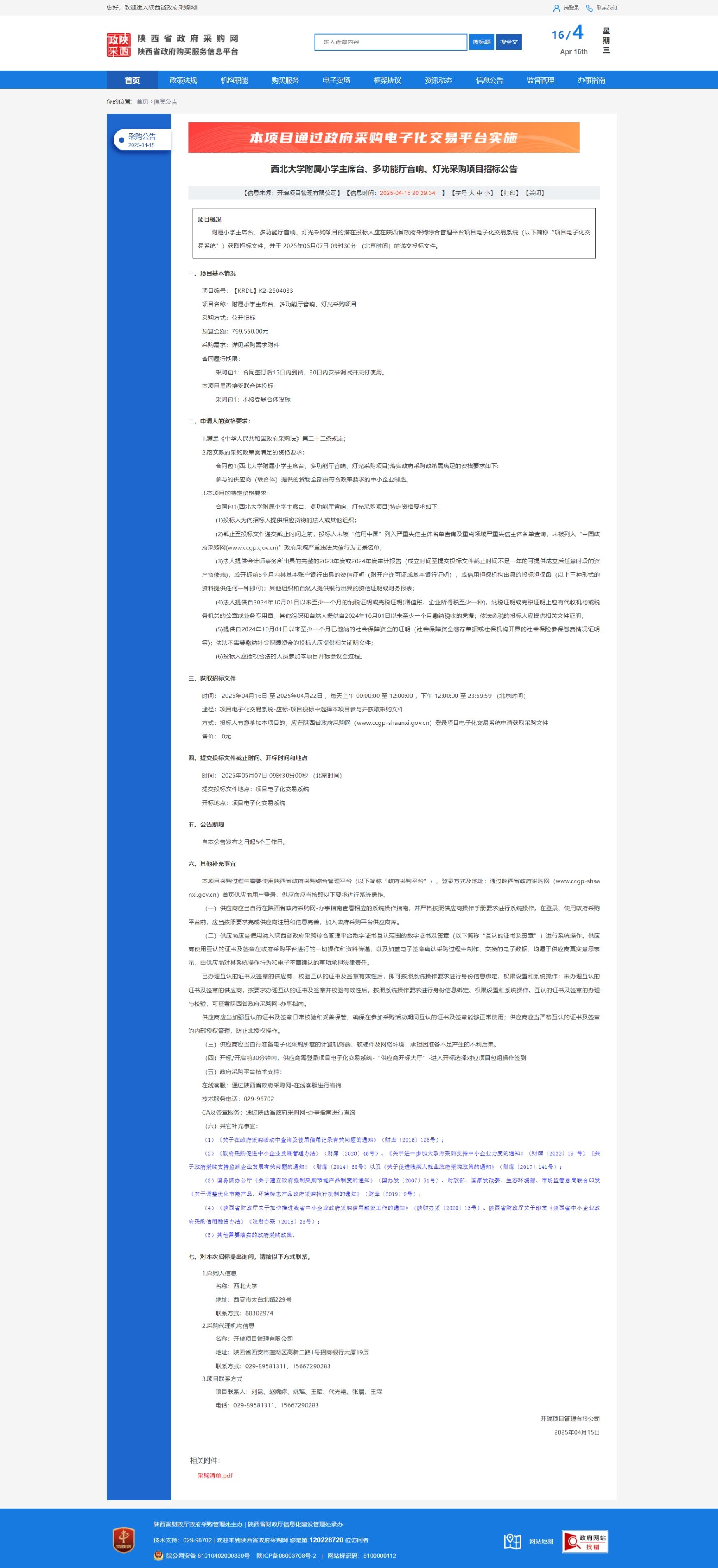 九游会在线登录官网附属小学主席台、多功能厅音响、灯光采购项目招标公告 作者: 编辑:采购与招标办公室 时间:2025-04-16 原公告链接:https://www.ccgp-shaanxi.gov.cn/freecms/site/shaanxi/ggxx/info/2025/8a69c49e9615fc7a01963929e326689b.html?noticeType=001011¬iceId=23d89ef7-19f7-11f0-8063-08c0eb20c666