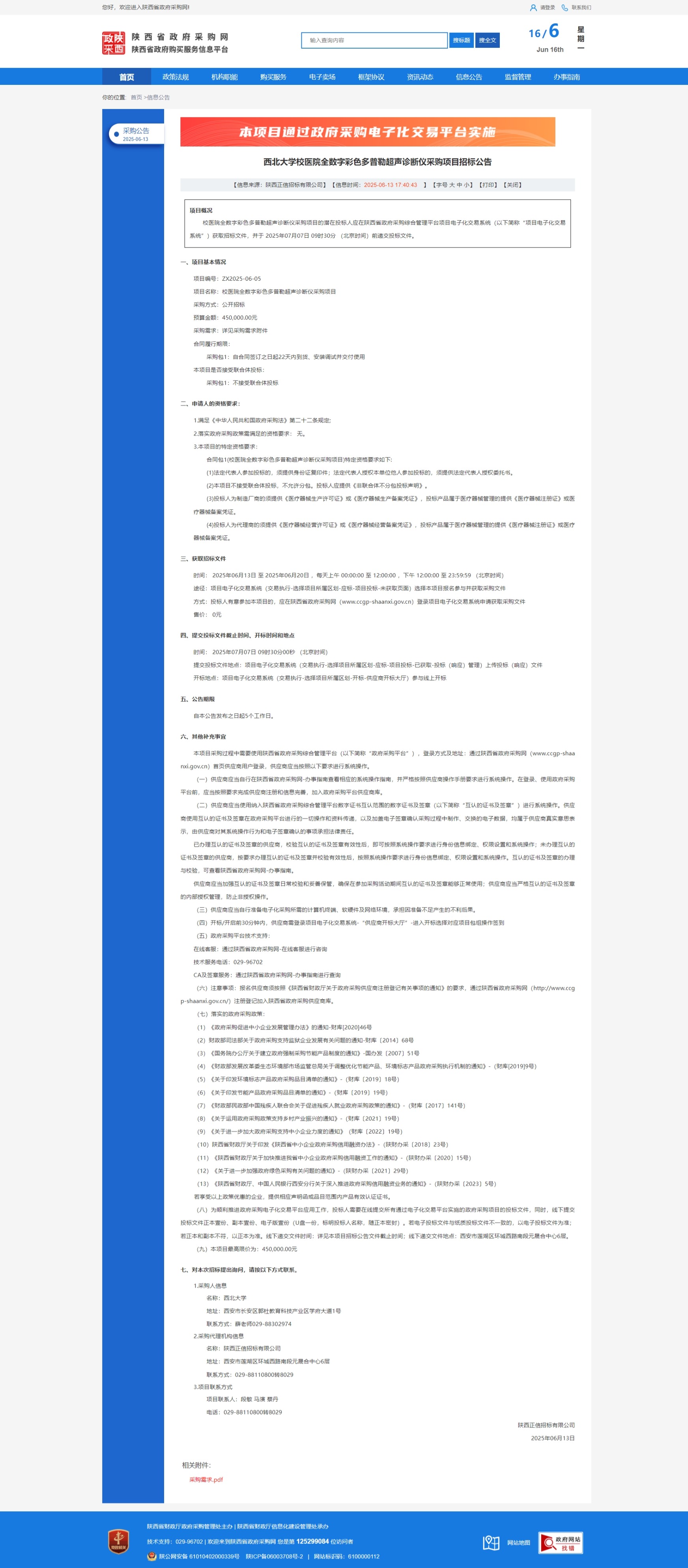 九游会在线登录官网校医院全数字彩色多普勒超声诊断仪采购项目招标公告 作者: 编辑:采购与招标办公室 时间:2025-06-16 原公告链接:https://www.ccgp-shaanxi.gov.cn/freecms/site/shaanxi/ggxx/info/2025/8a69c6749714a43701976892e3823fce.html?noticeType=001011¬iceId=6edbc741-483c-11f0-8063-08c0eb20c666