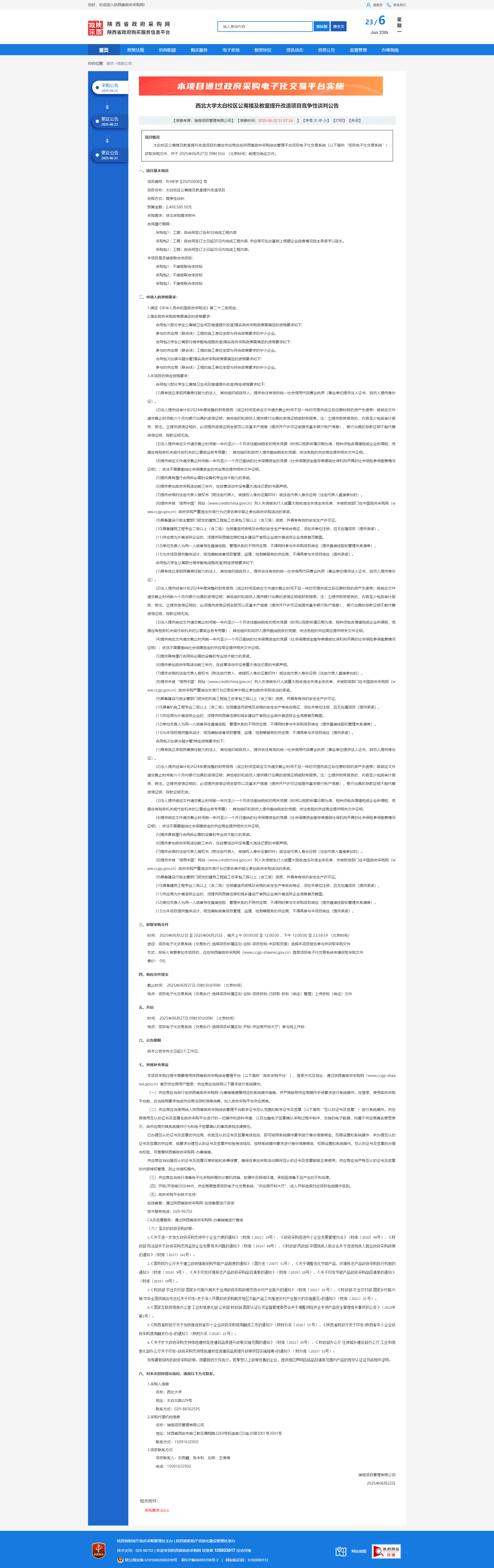 九游会在线登录官网太白校区公寓楼及教室提升改造项目竞争性谈判公告