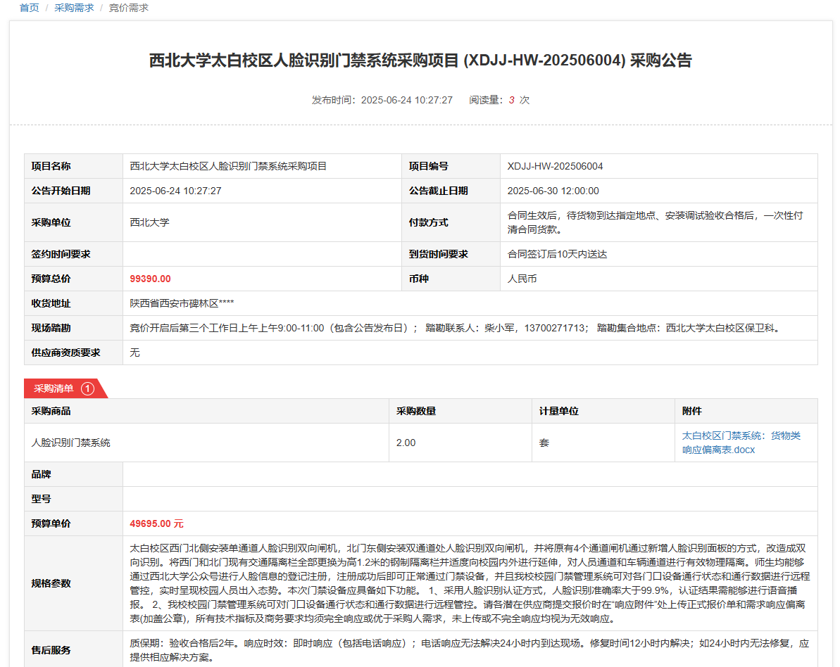 九游会在线登录官网太白校区人脸识别门禁系统采购项目(XDJJ-HW-202506004)竞价采购公告 作者: 编辑: 时间:2025-06-24 原公告链接:https://www.ejingcai.com.cn/site/bidding/detail/19128