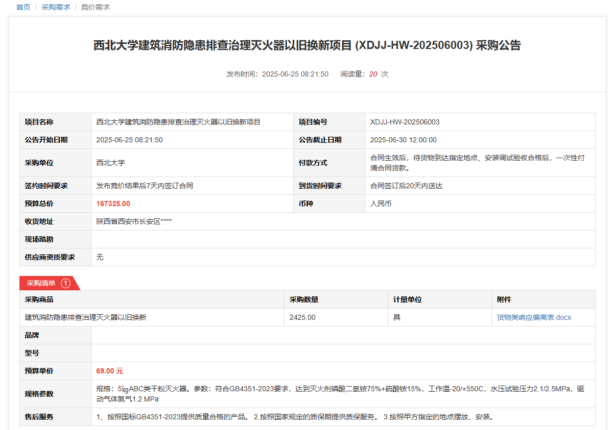 九游会在线登录官网建筑消防隐患排查治理灭火器以旧换新项目(XDJJ-HW-202506003)竞价采购公告 作者:采购与招标办公室 编辑: 时间:2025-06-25 原公告链接:https://www.ejingcai.com.cn/site/bidding/detail/19167