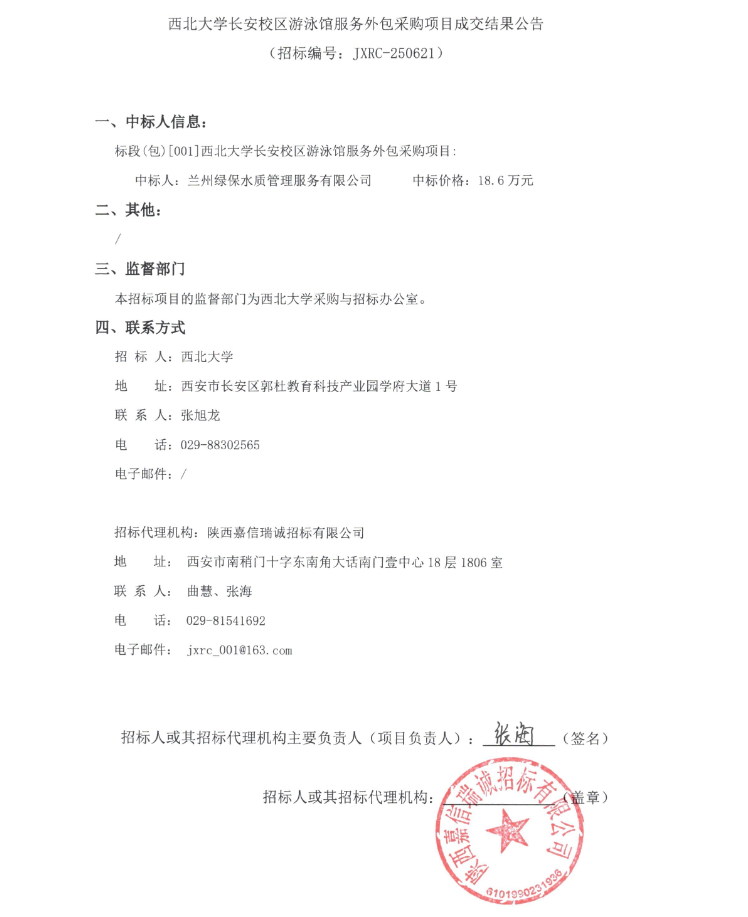 九游会在线登录官网长安校区游泳馆服务外包采购项目成交结果公告