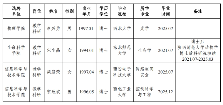 经资格审查,用人单位考查,学校专家评审会审议,九游会在线登录官网拟确定下列人员来校工作,聘任方式为事业编正常选聘本着公平、公正、公开的原则,现将本次拟选聘人员基本情况公示如下: