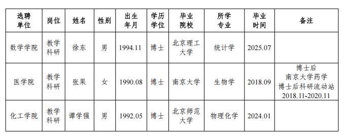 关于教学科研单位选聘教师情况的公示