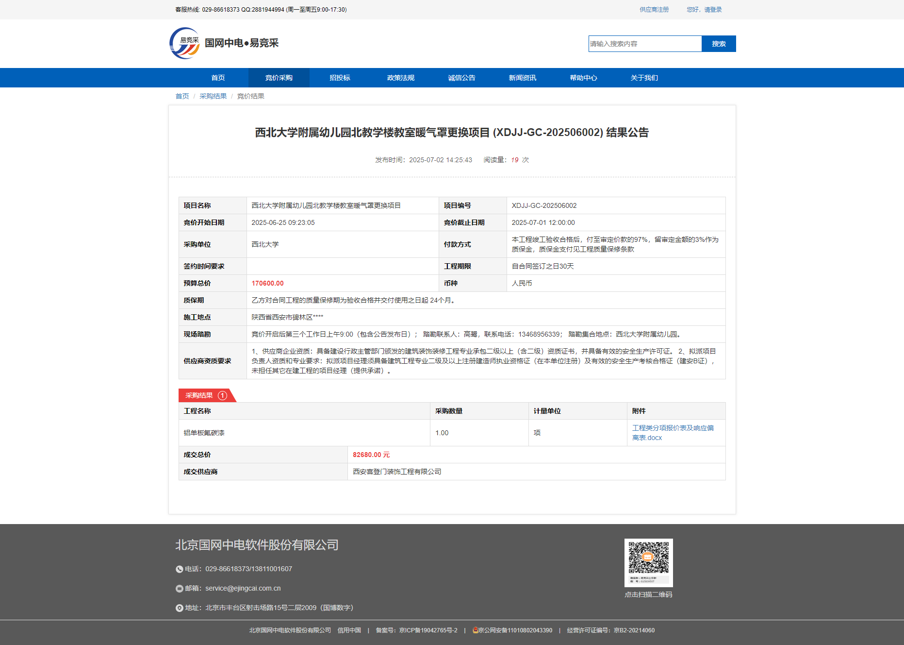 九游会在线登录官网附属幼儿园北教学楼教室暖气罩更换项目 (XDJJ-GC-202506002) 结果公告
