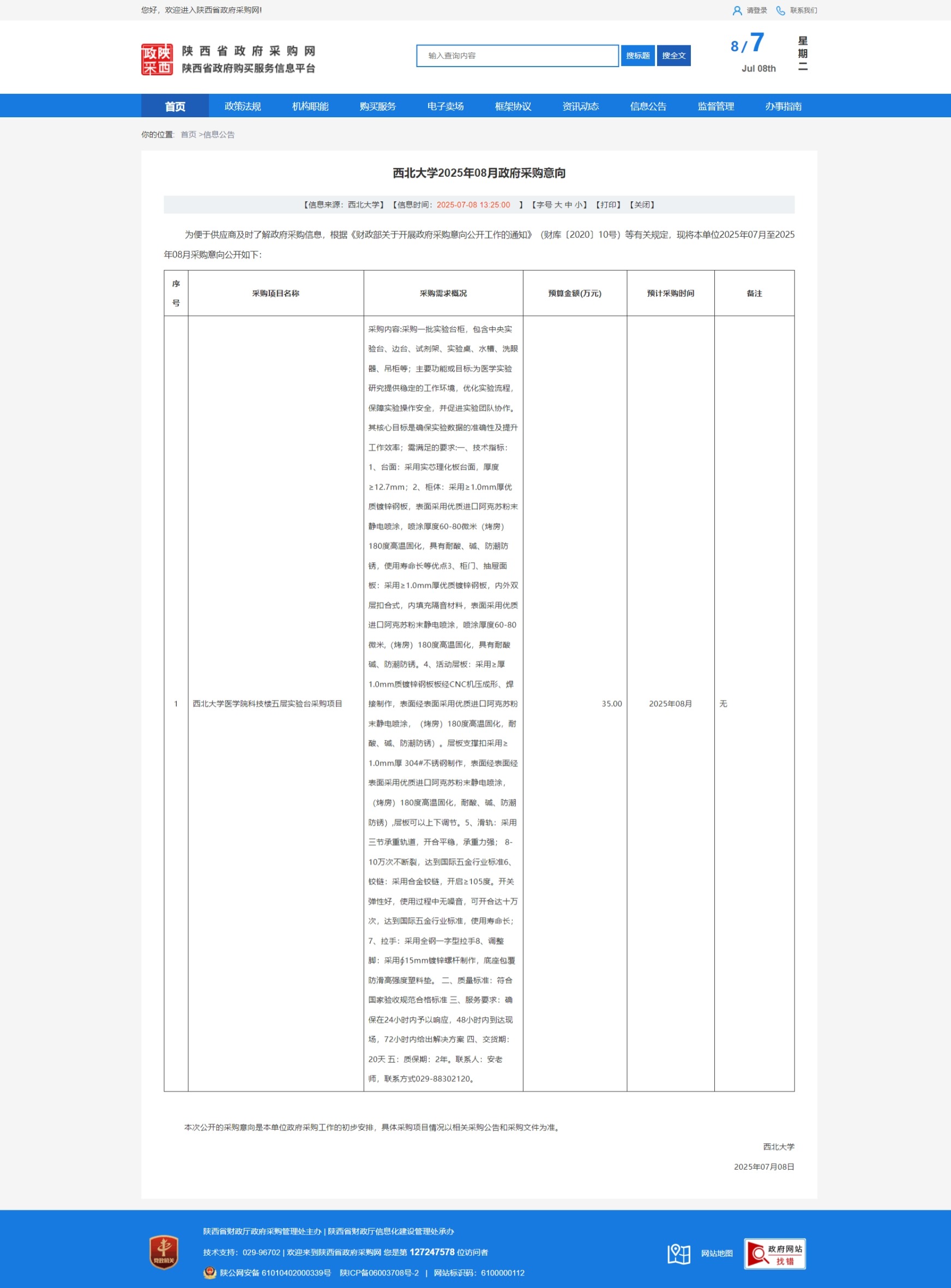 九游会在线登录官网2025年08月政府采购意向 作者: 编辑:采购与招标办公室 时间:2025-07-08 原公告链接:https://www.ccgp-shaanxi.gov.cn/freecms/site/shaanxi/ggxx/info/2025/8a69c68d97d2c4550197e87d6842455f.html?noticeType=59¬iceId=e4cb9cdd-5bbd-11f0-8063-08c0eb20c666