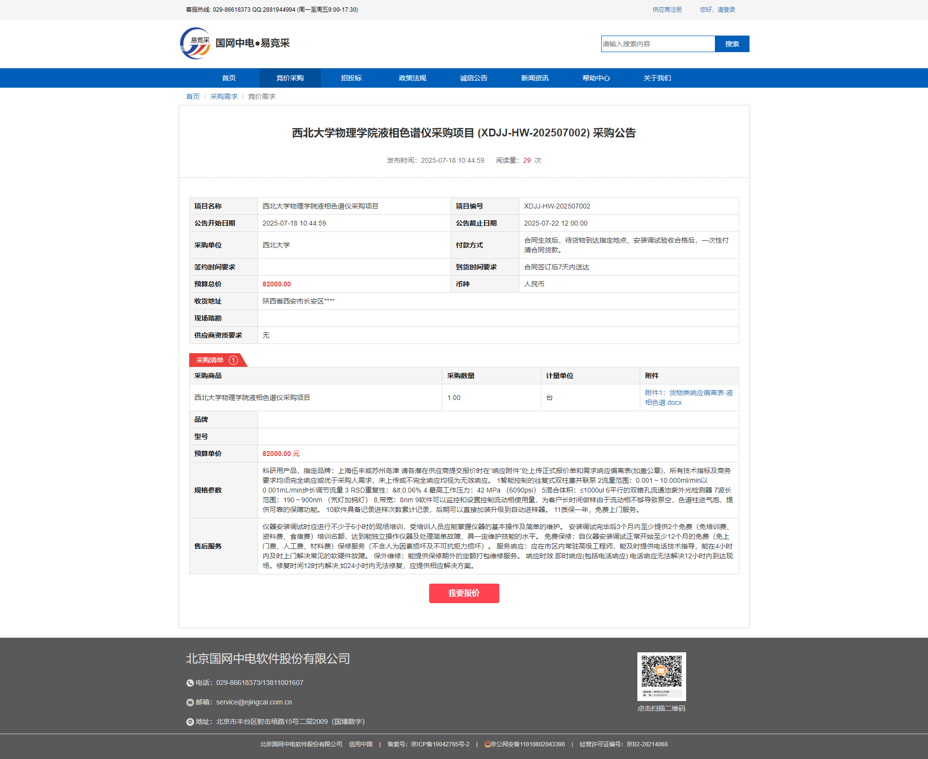 九游会在线登录官网物理学院液相色谱仪采购项目 (XDJJ-HW-202507002) 采购公告