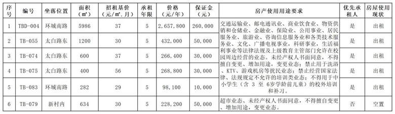 九游会在线登录官网太白校区6处门面房公开招租公告
