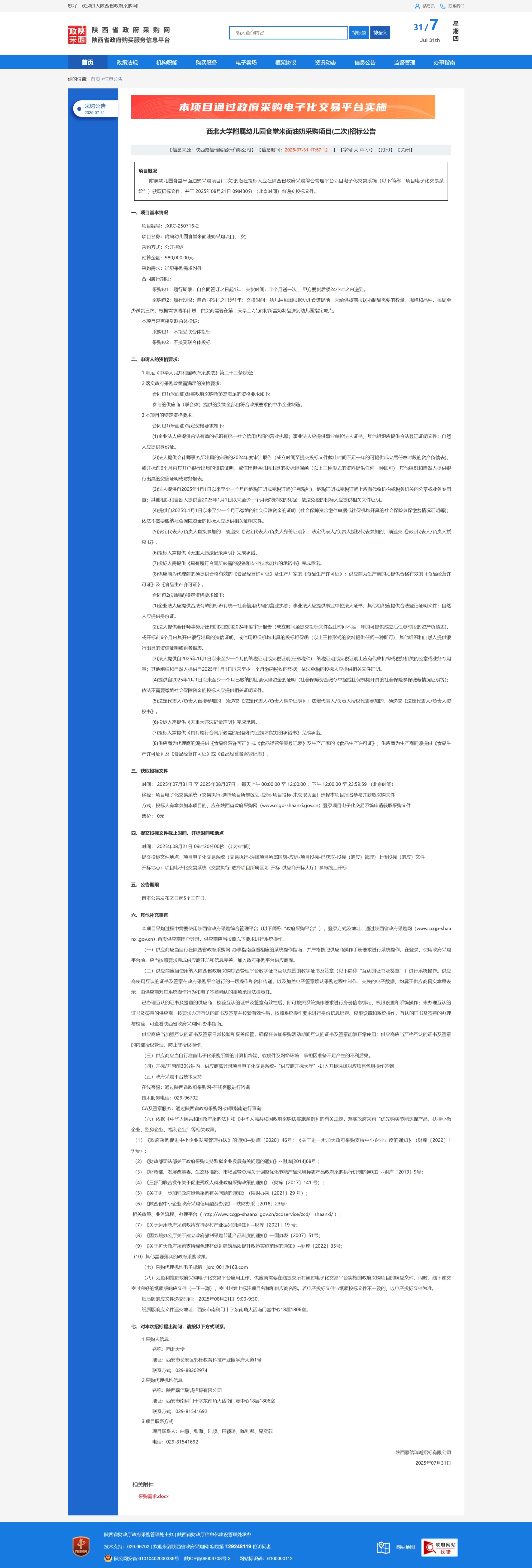 九游会在线登录官网附属幼儿园食堂米面油奶采购项目(二次)招标公告 作者: 编辑:采购与招标办公室 时间:2025-07-31 原公告链接:https://www.ccgp-shaanxi.gov.cn/freecms/site/shaanxi/ggxx/info/2025/8a69c4d4985e3e5601985fe2fab2305e.html?noticeType=001011¬iceId=c51d4796-6df6-11f0-8063-08c0eb20c666