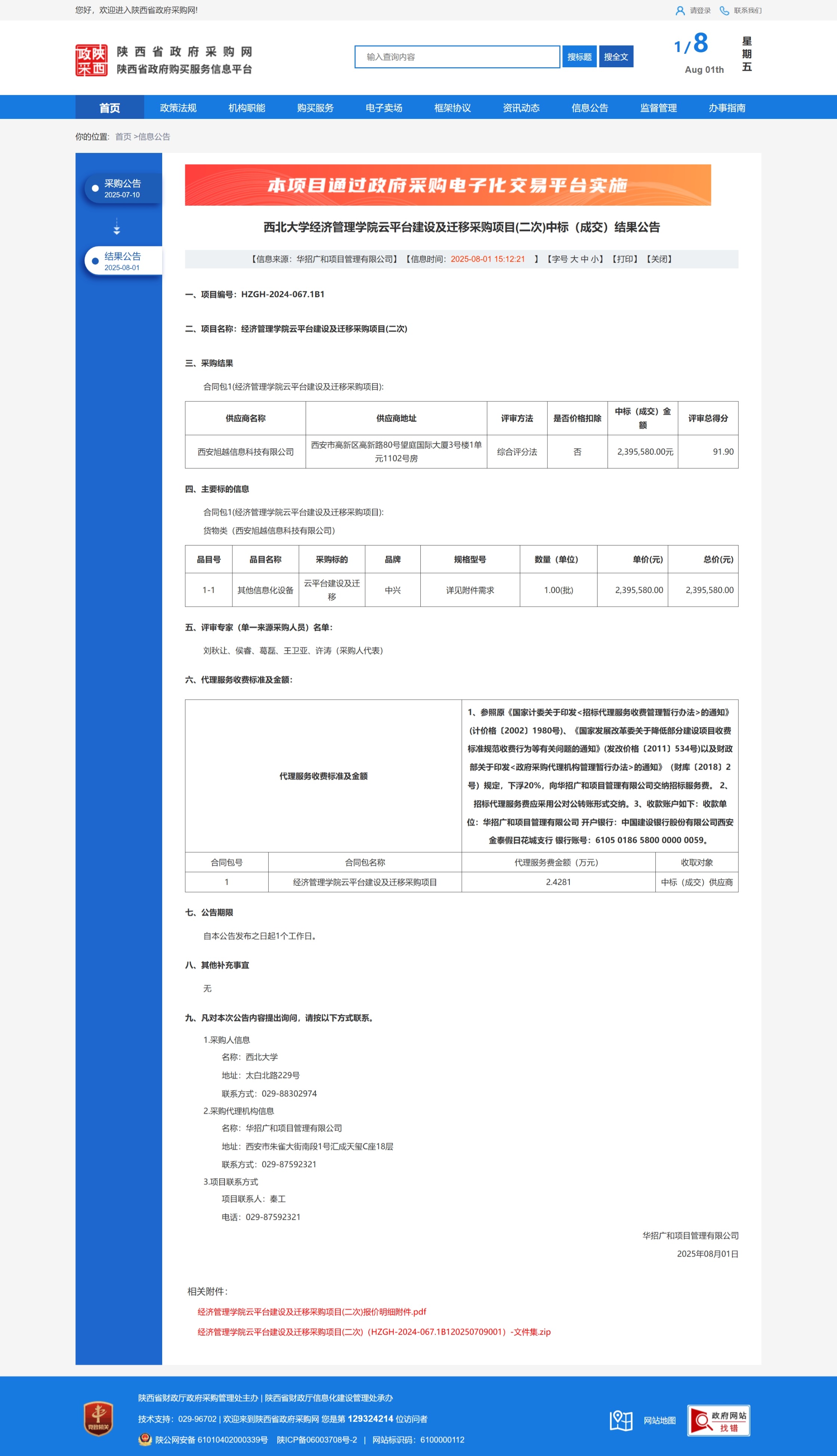 九游会在线登录官网经济管理学院云平台建设及迁移采购项目(二次)中标(成交)结果公告 作者: 编辑:采购与招标办公室 时间:2025-08-01 原公告链接:https://www.ccgp-shaanxi.gov.cn/freecms/site/shaanxi/ggxx/info/2025/8a69c6959860f2ce01986101532605f6.html?noticeType=001021¬iceId=e8cedee8-6ea8-11f0-8063-08c0eb20c666
