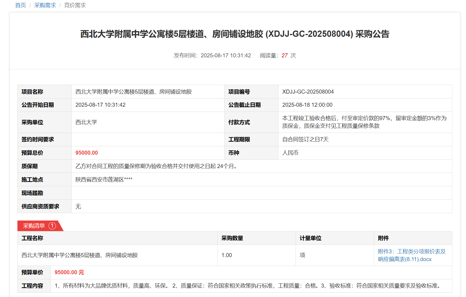九游会在线登录官网太白校区科研楼公共区域、教学七号楼室内照明设施更换(XDJJ-GC-202508001)竞价结果公告